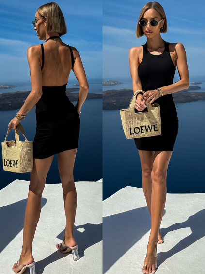 Černé dlouhé letní basic šaty EGMONT s rozparkem