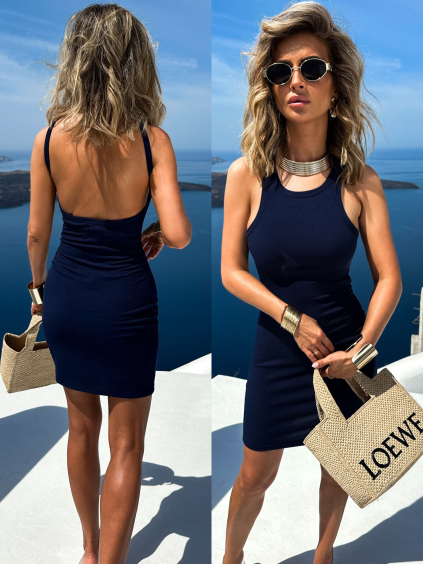 Tmavě modré dlouhé basic šaty EGMONT s rozparkem