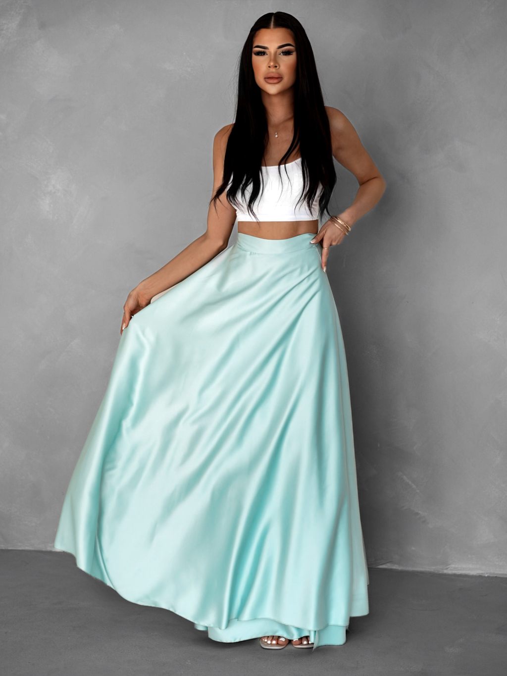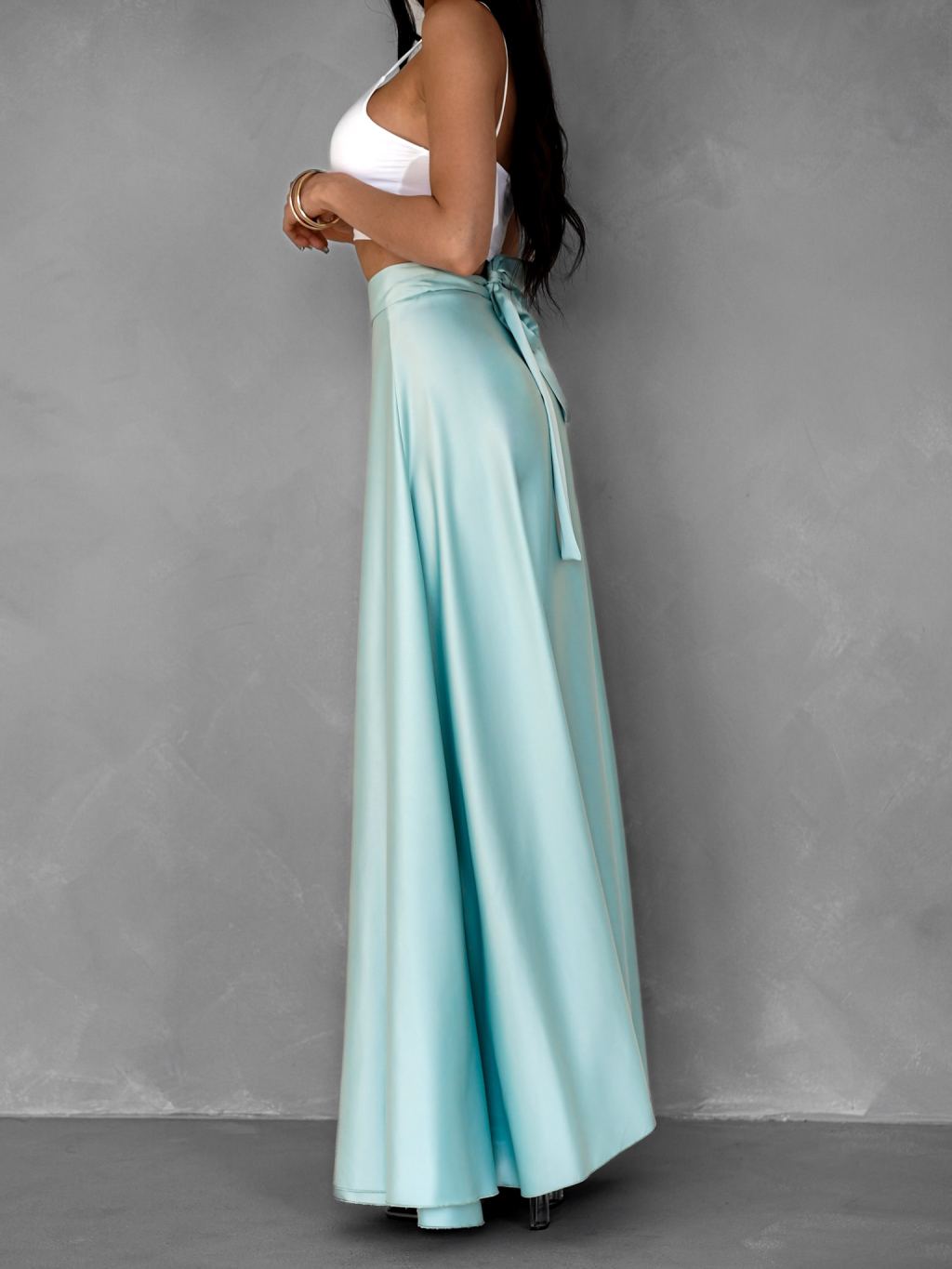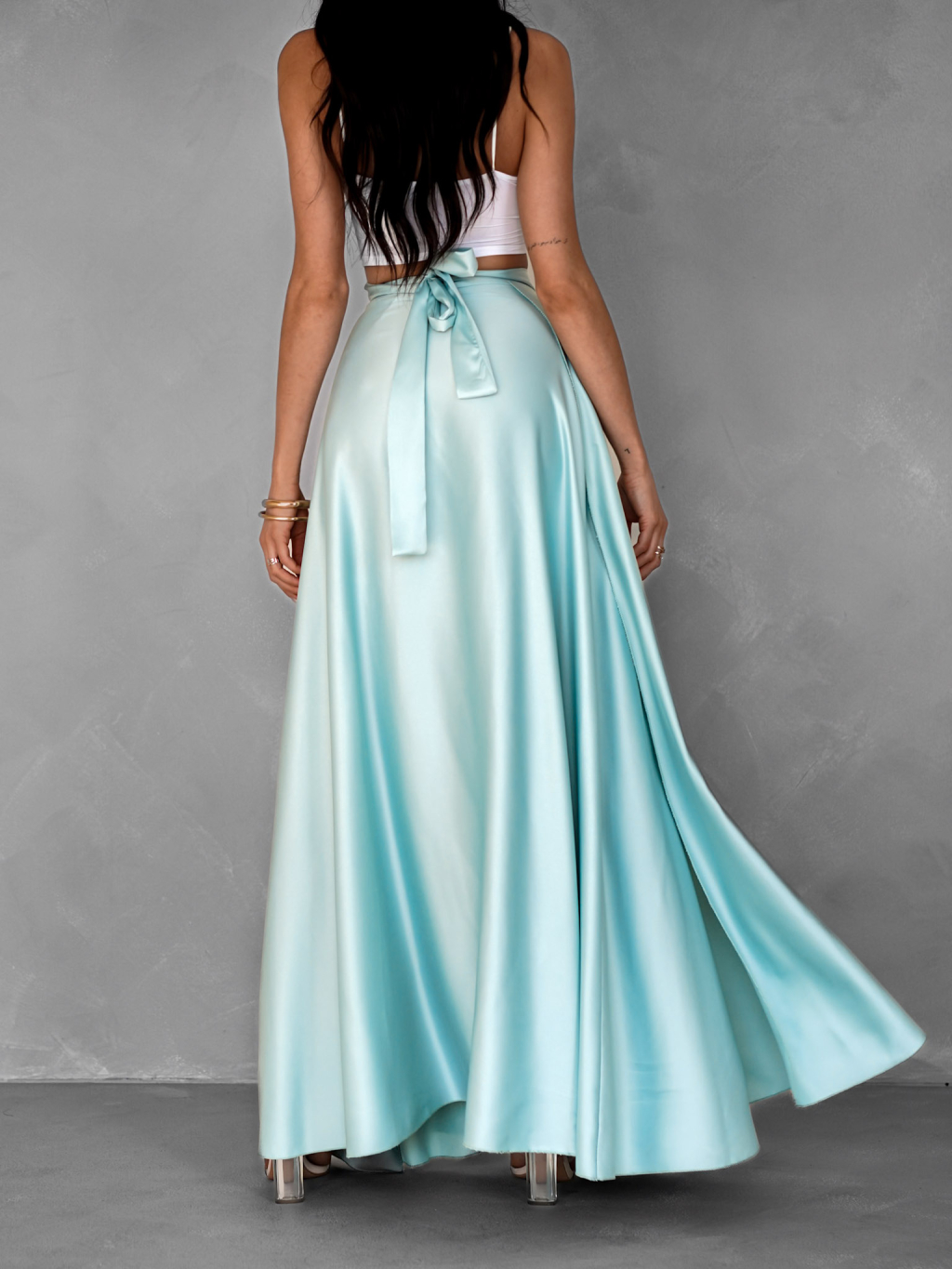 Mentolová saténová dlouhá sukně DENISSE zavinovací