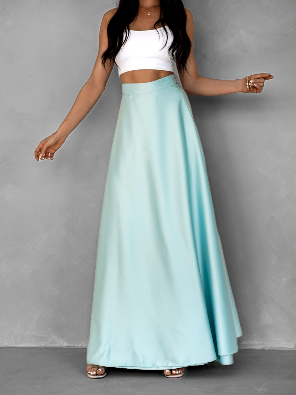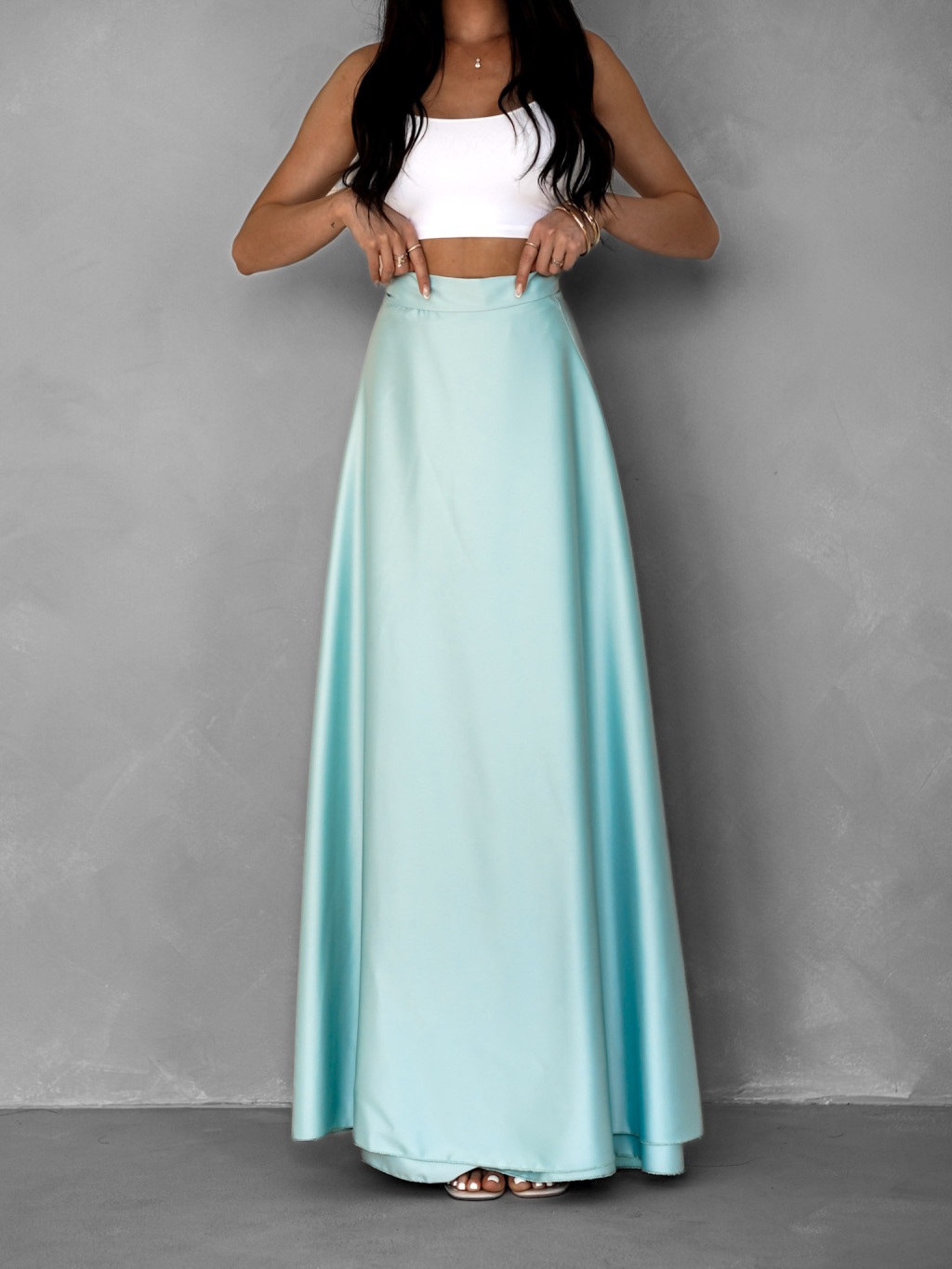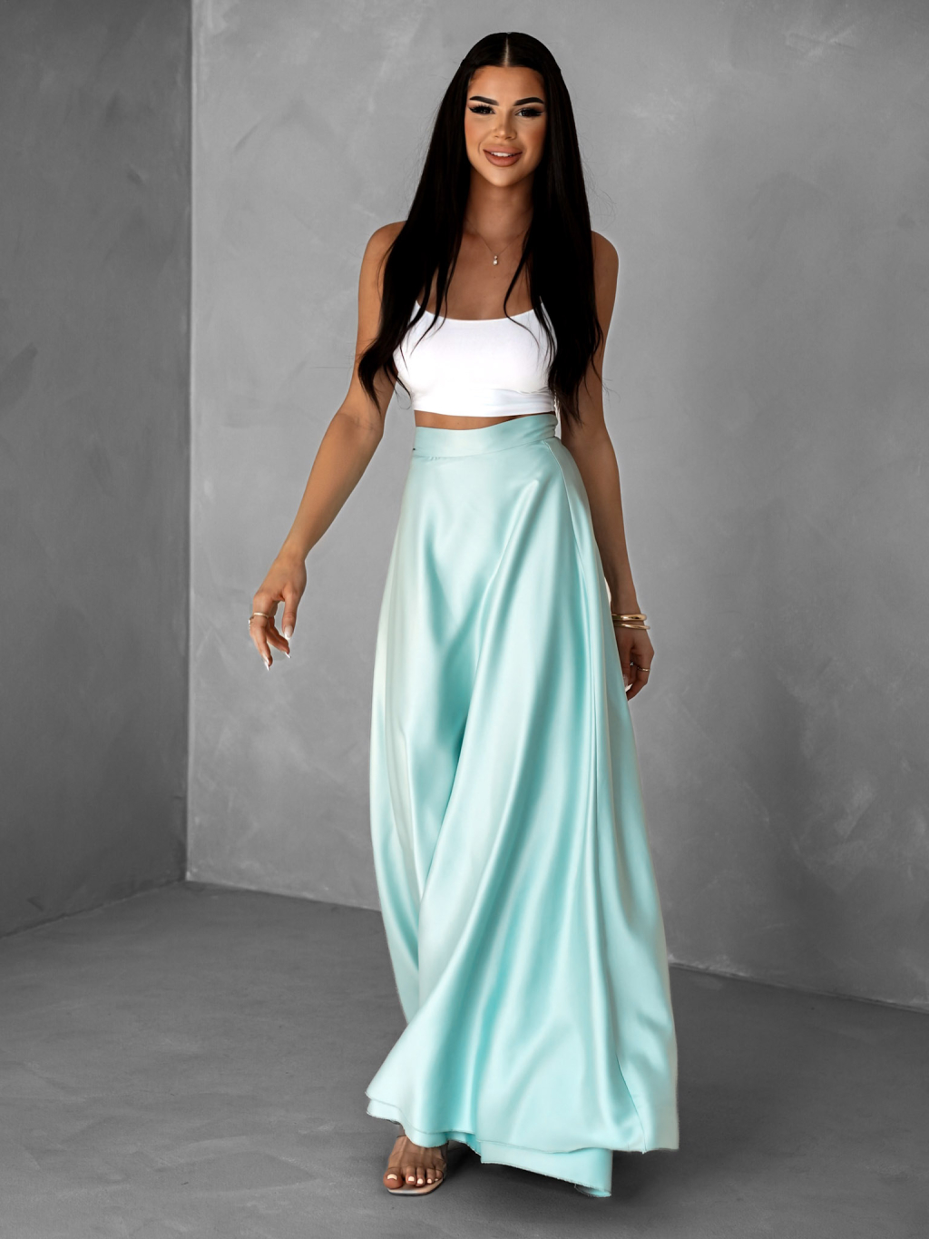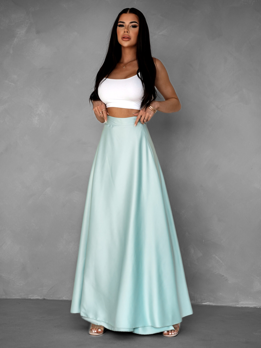 Mentolová saténová dlouhá sukně DENISSE zavinovací