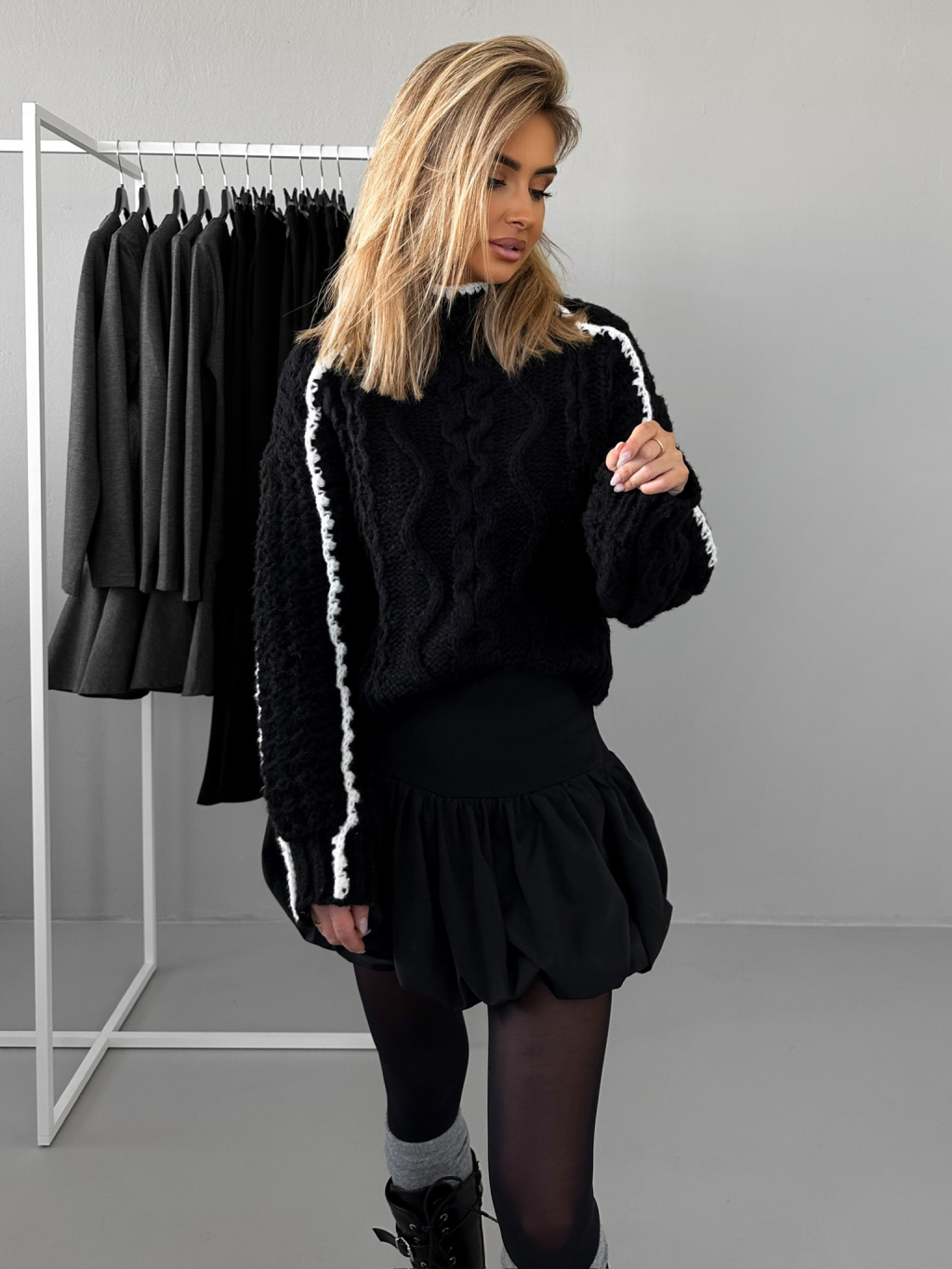Černý stylový svetr MILI s rolákem