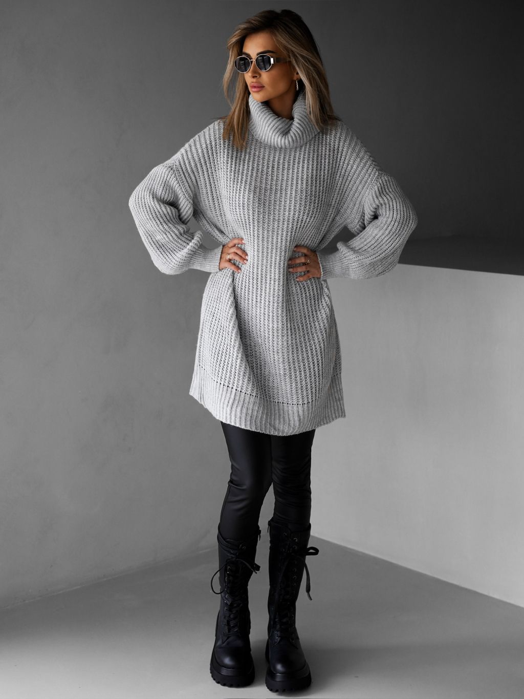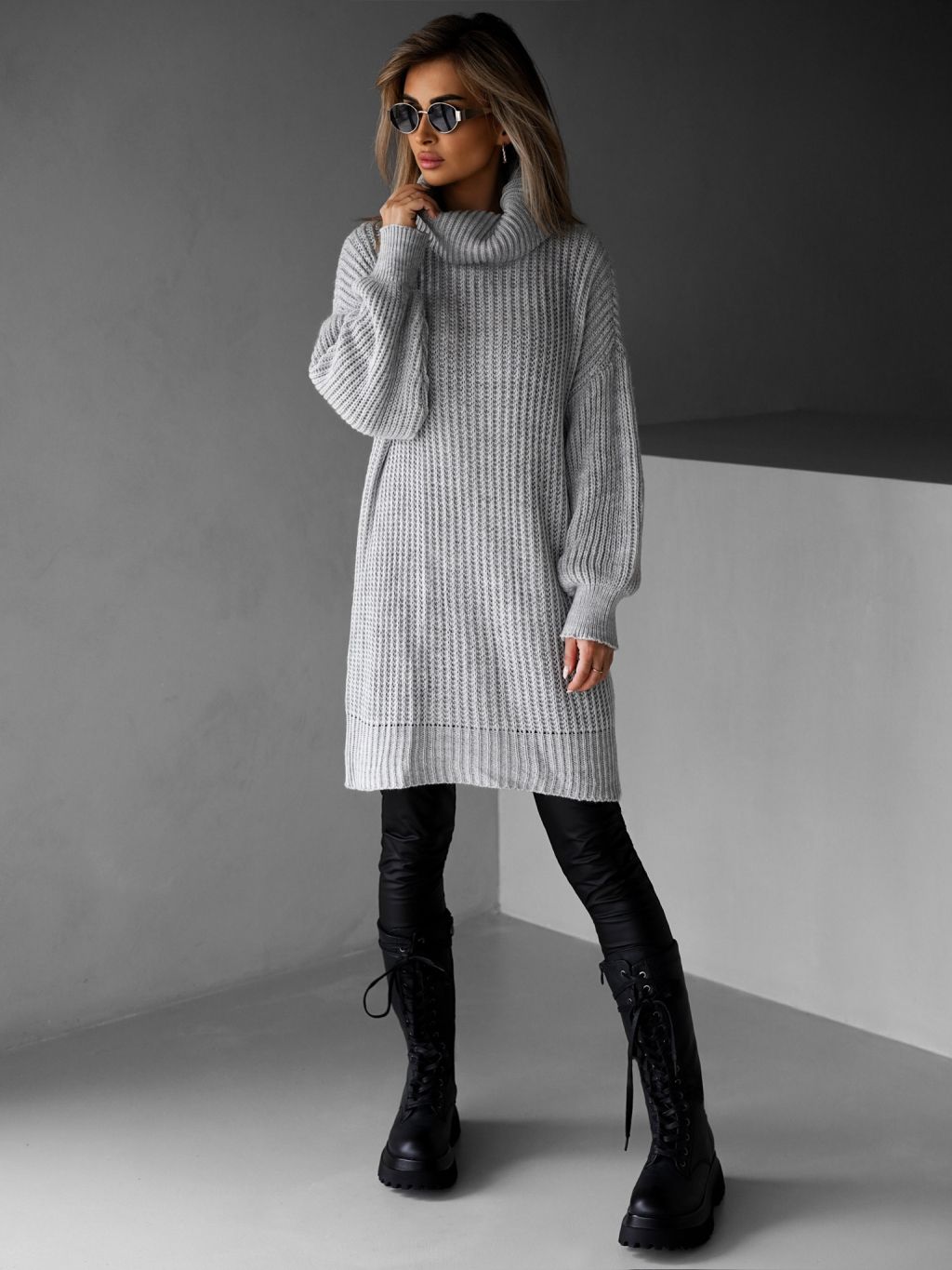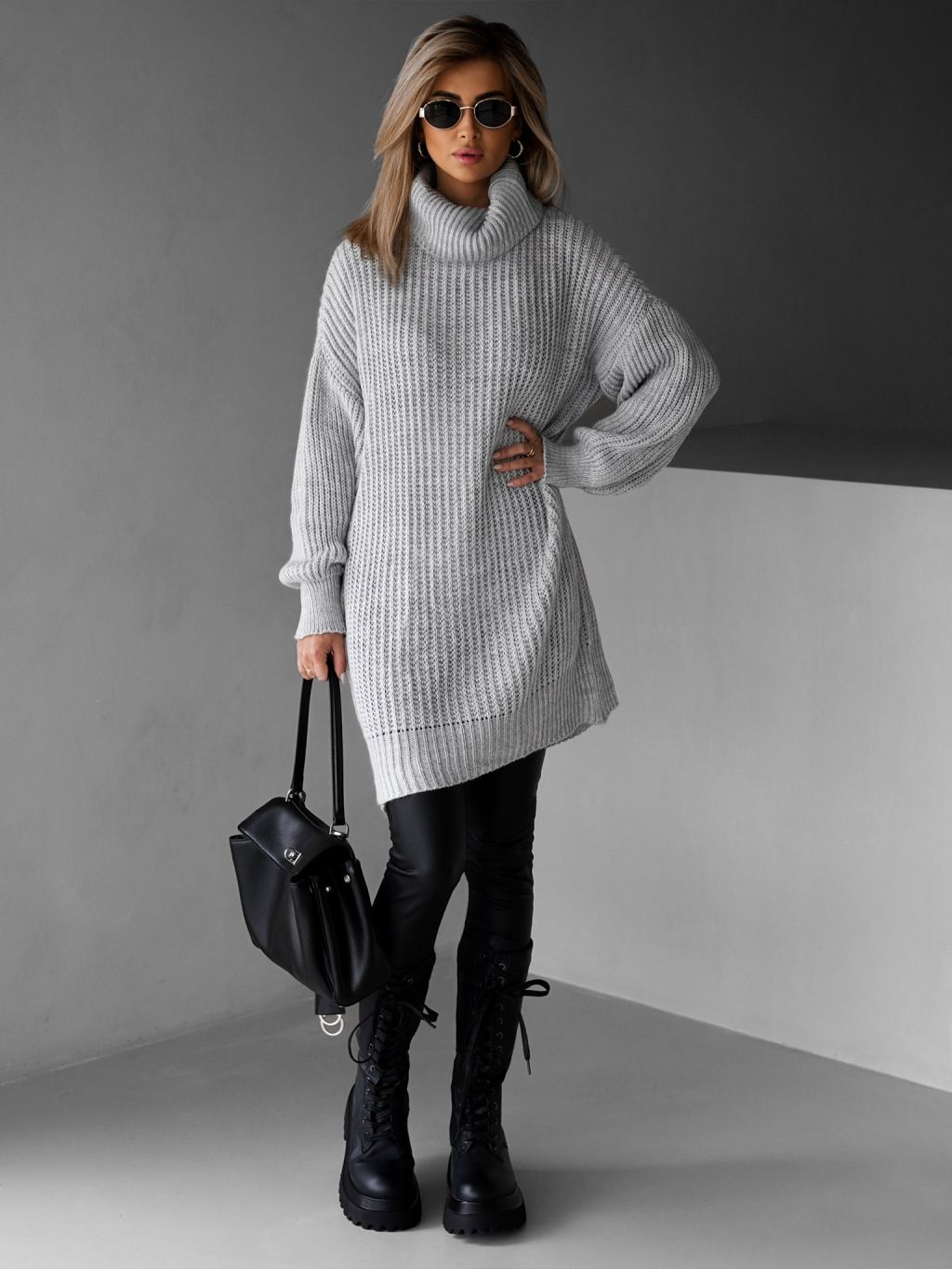 Šedý oversize dlouhý svetr THECLOAT s rolákem