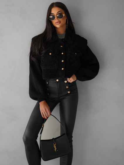Černá krátká teddy stylová bunda BOBBY