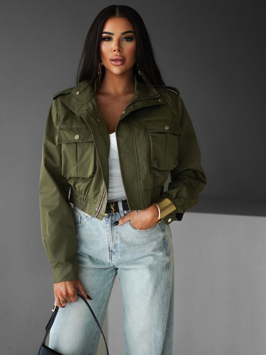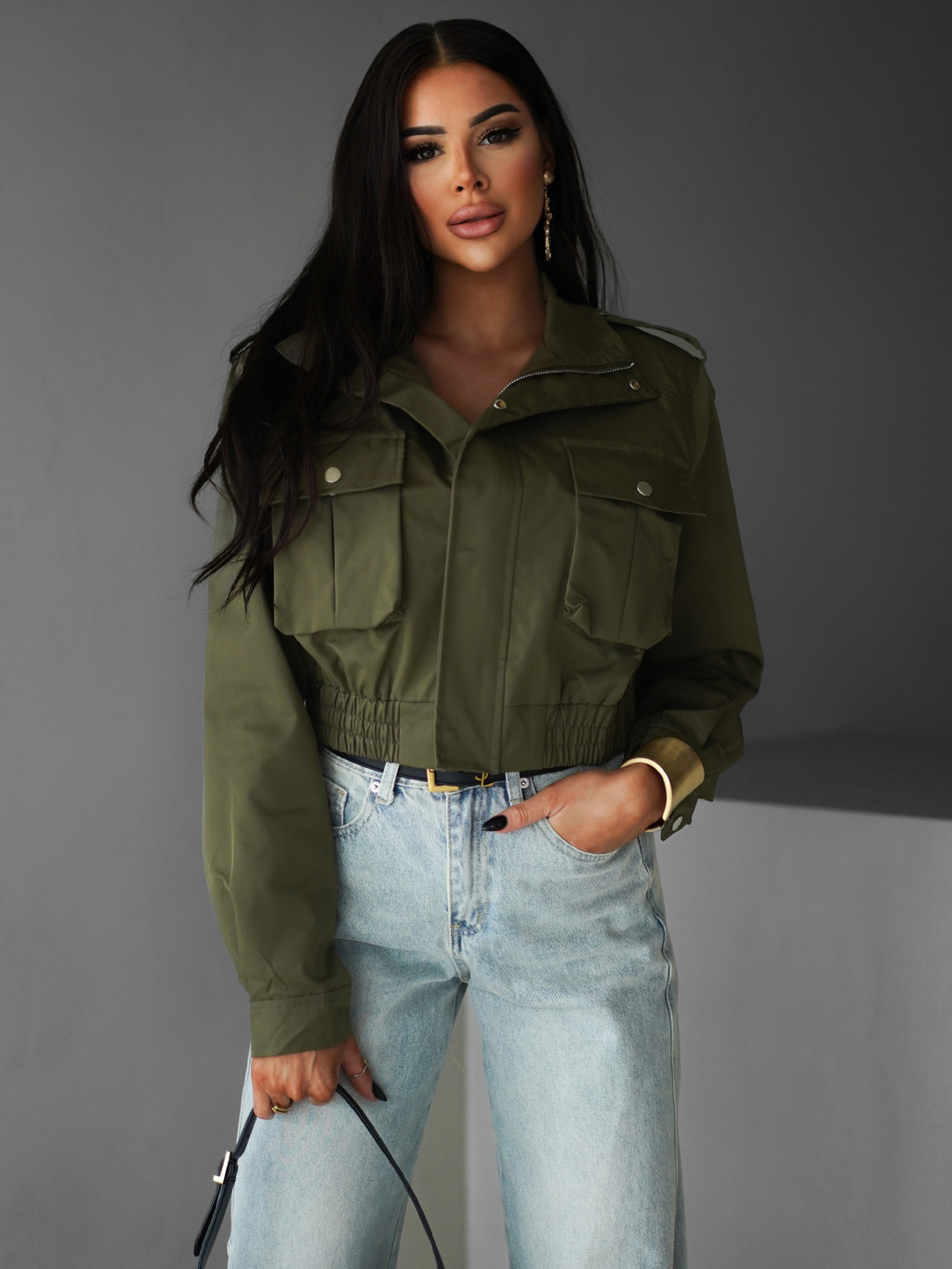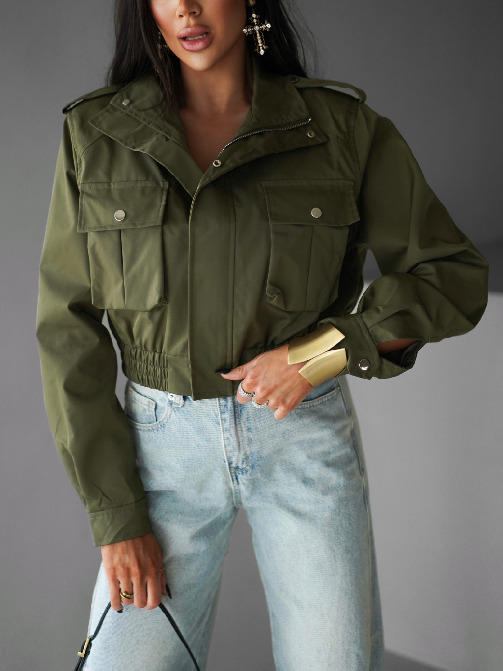 Khaki krátká stylová bunda GRAZYNA