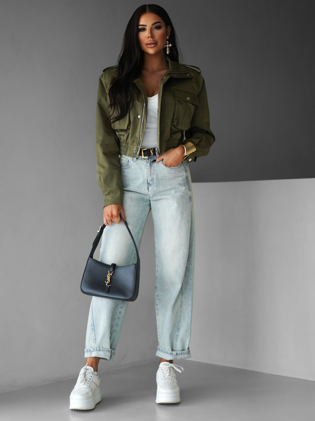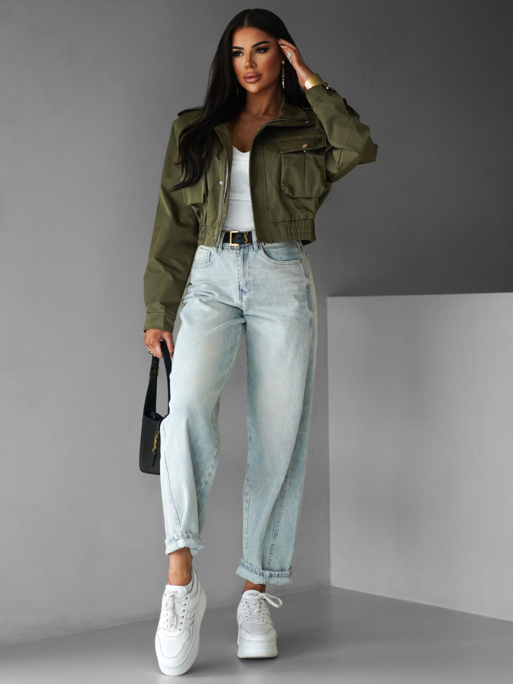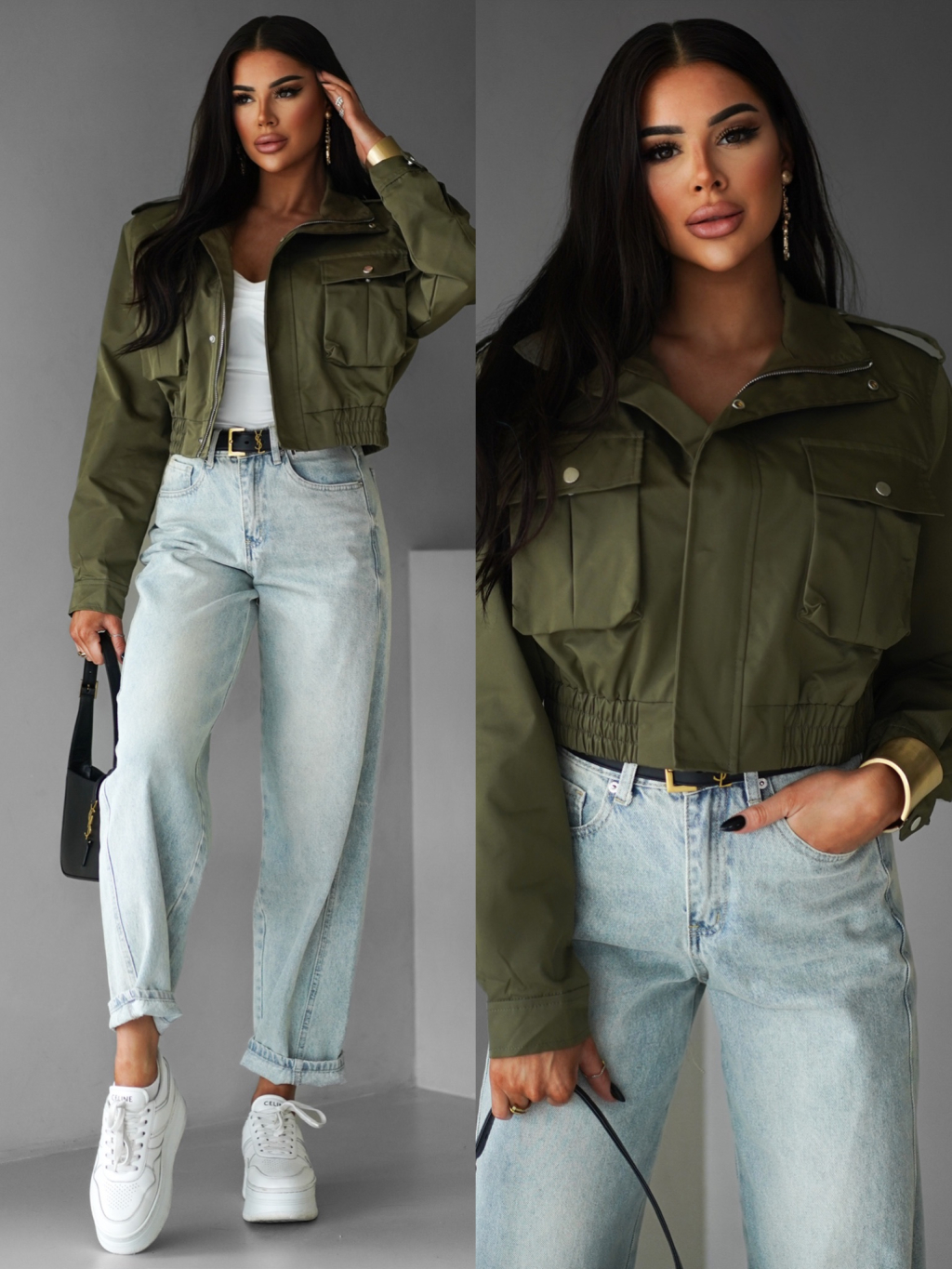 Khaki krátká stylová bunda GRAZYNA