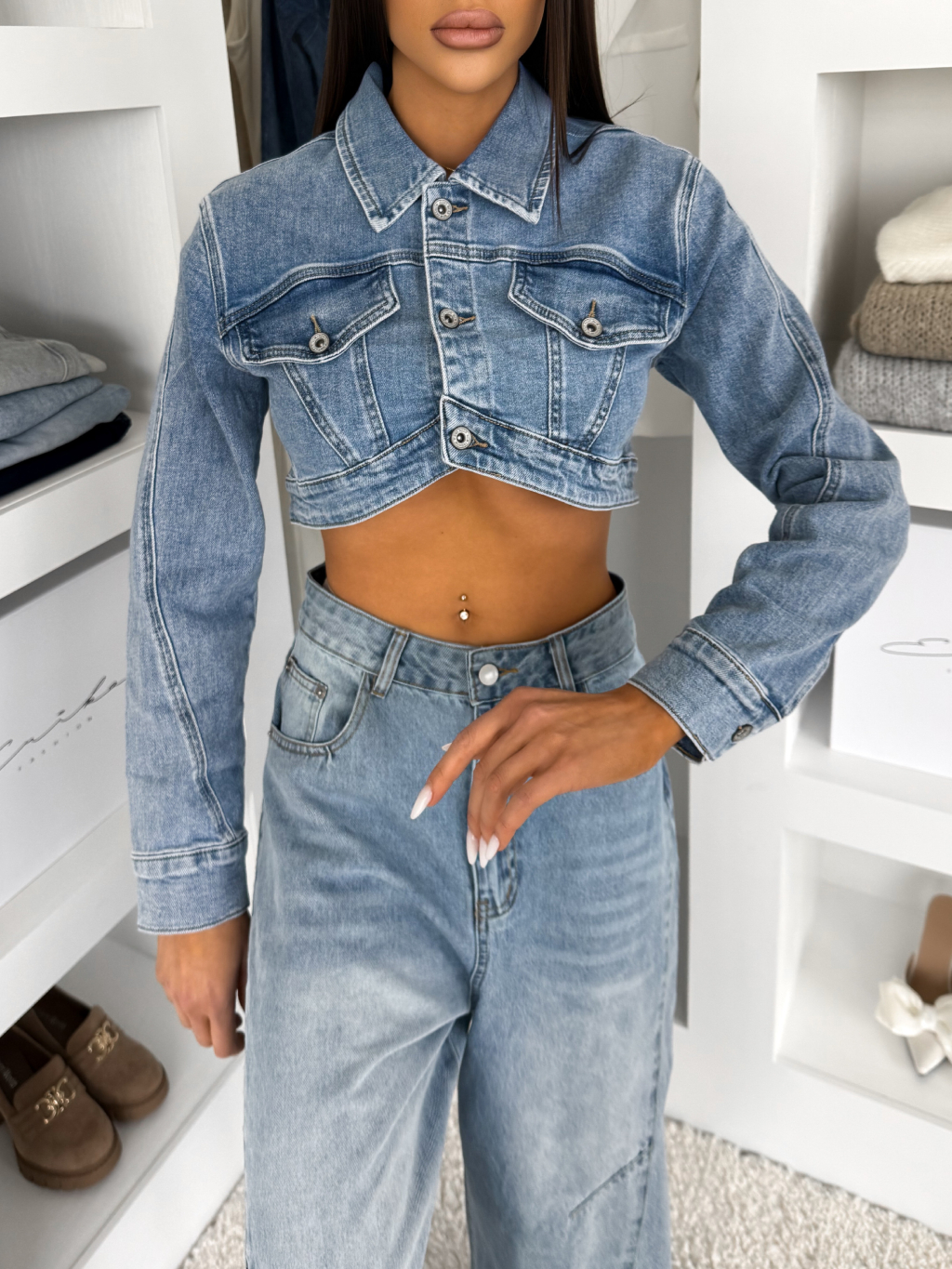 Modrá džínová krátká mini bunda XYLORA
