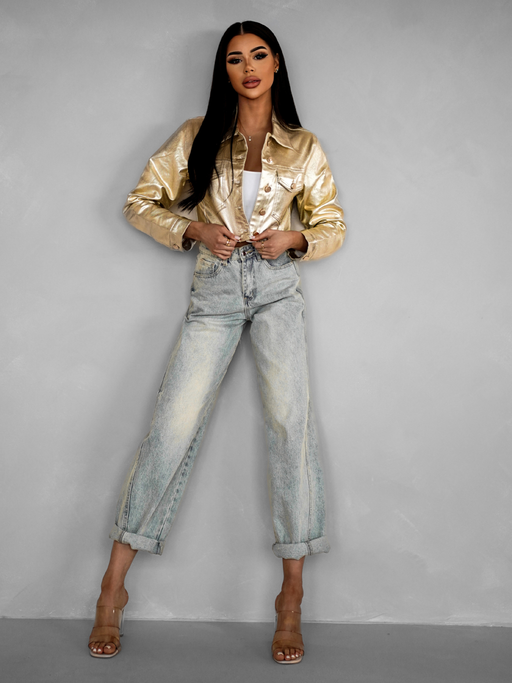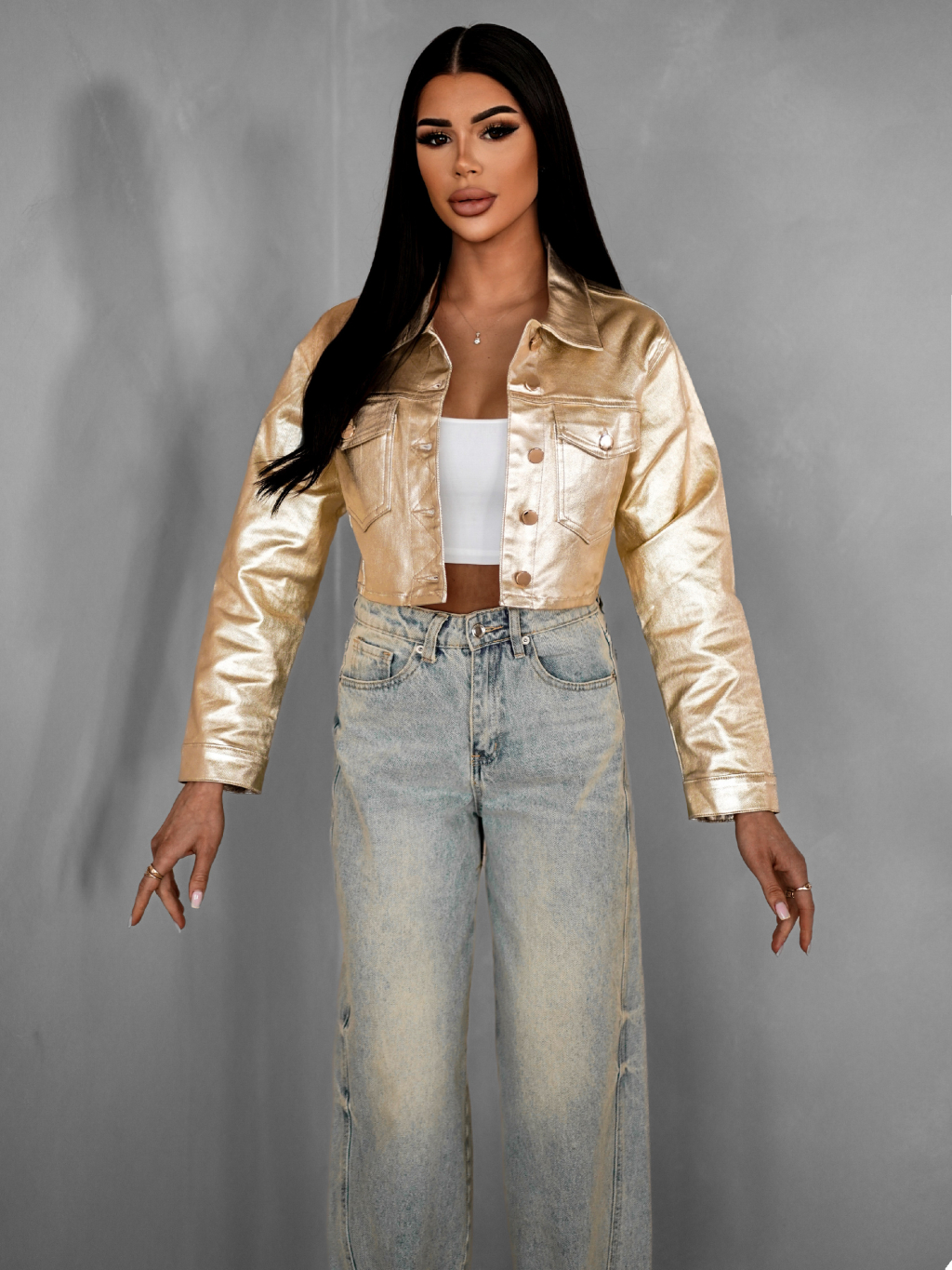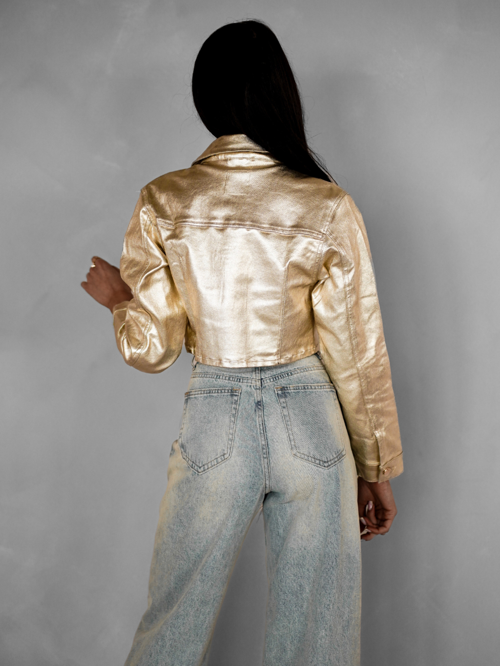 Zlatá crop džínová krátká bunda RODIK