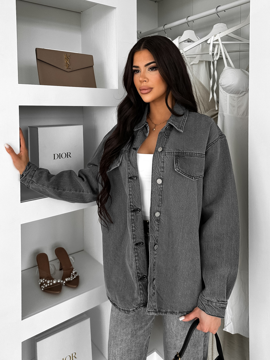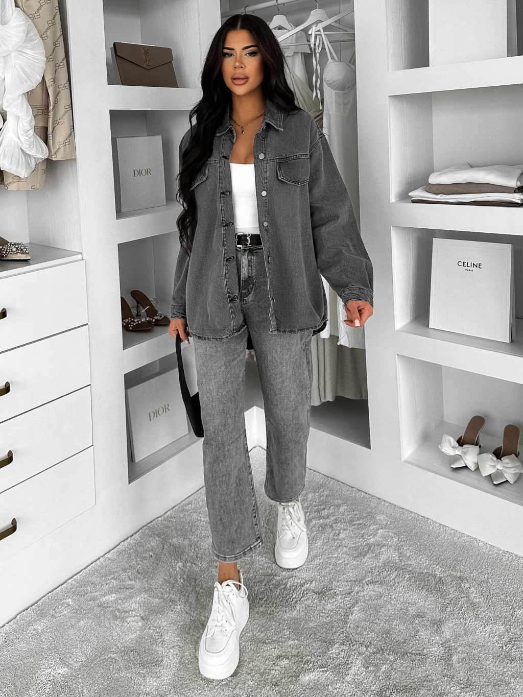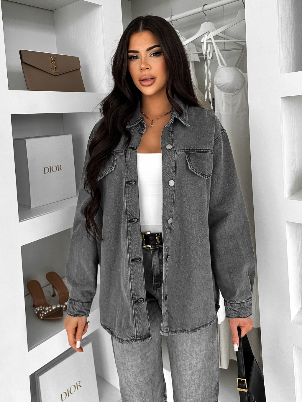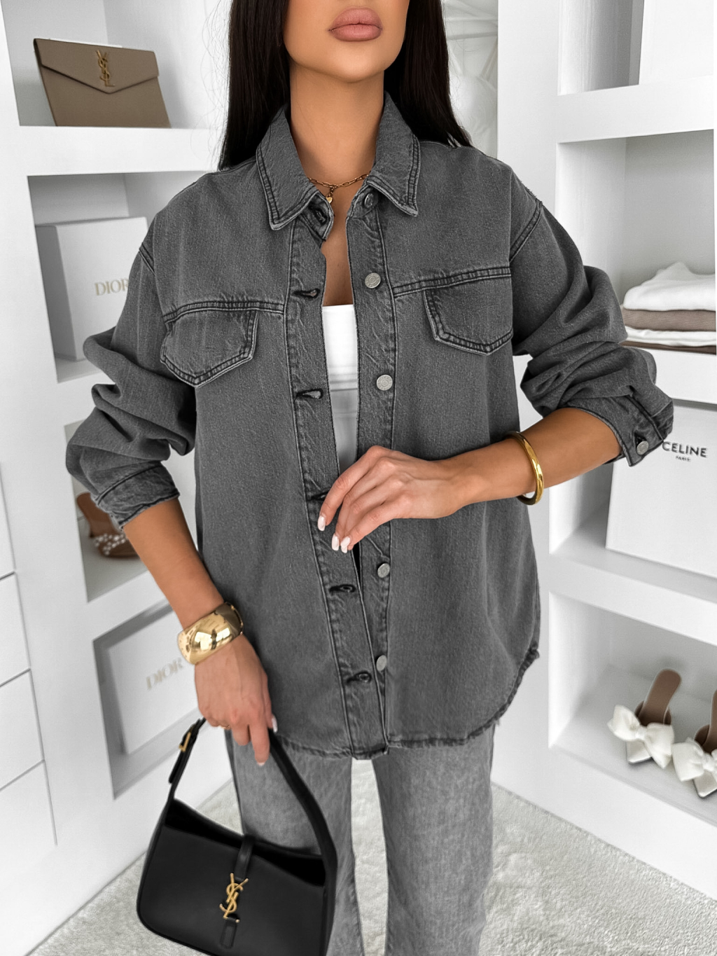 Šedá džínová denim oversize košile ELORIA