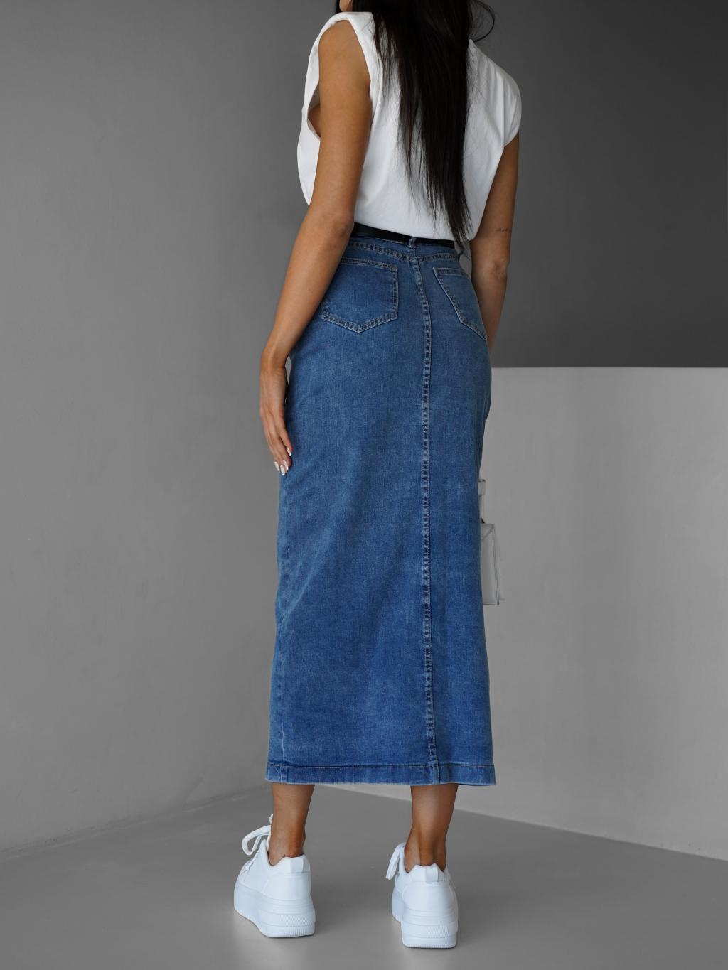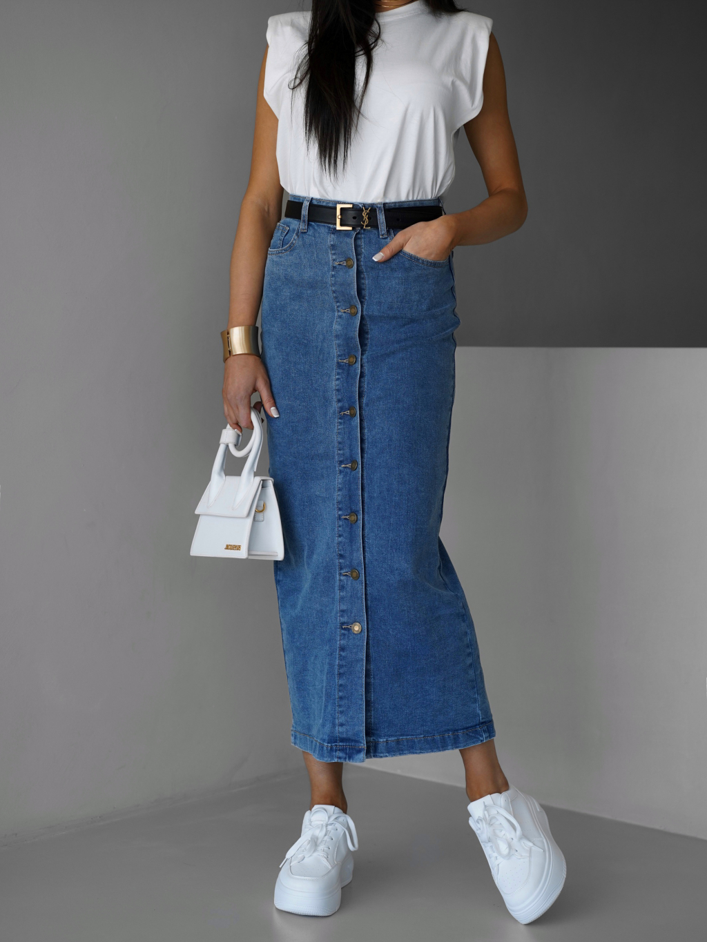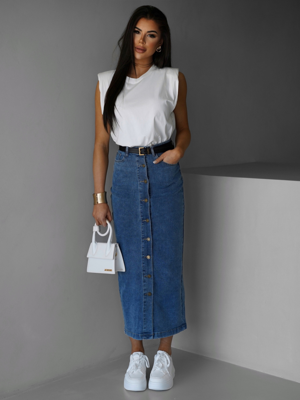 Modrá dlouhá džínová denim sukně AUGUSTYN s knoflíky