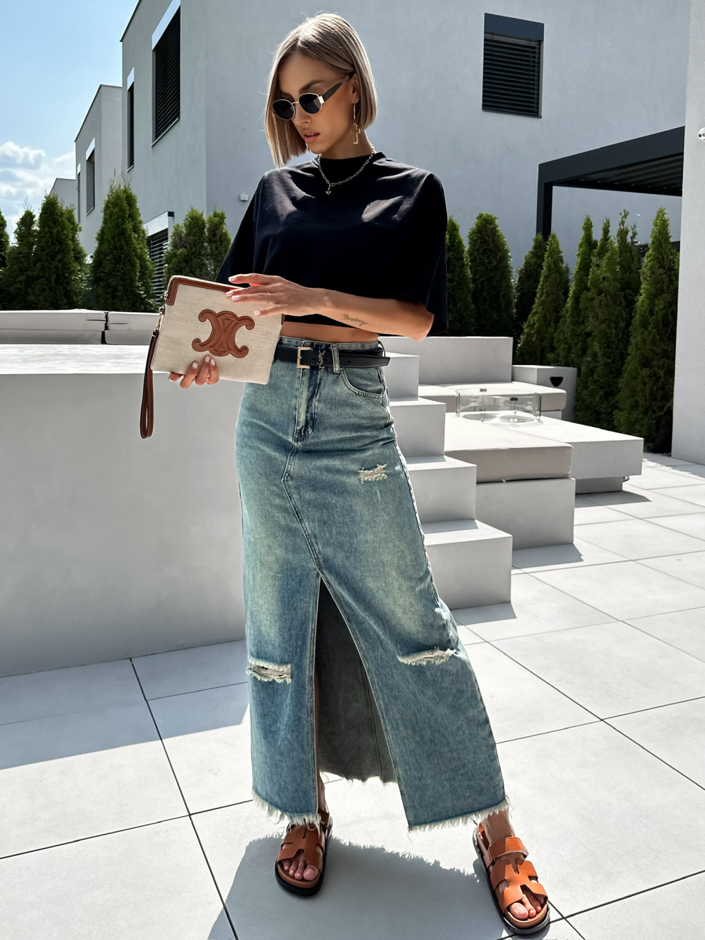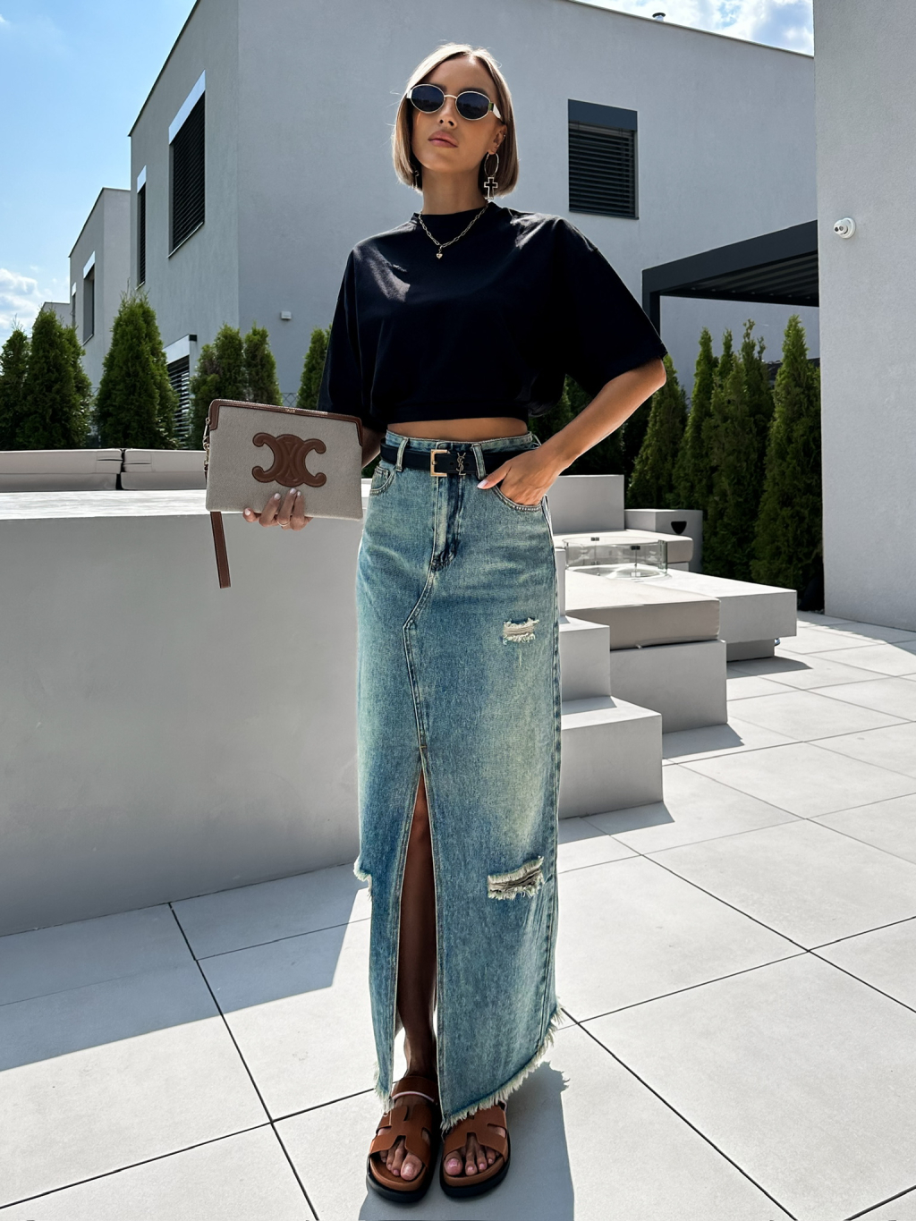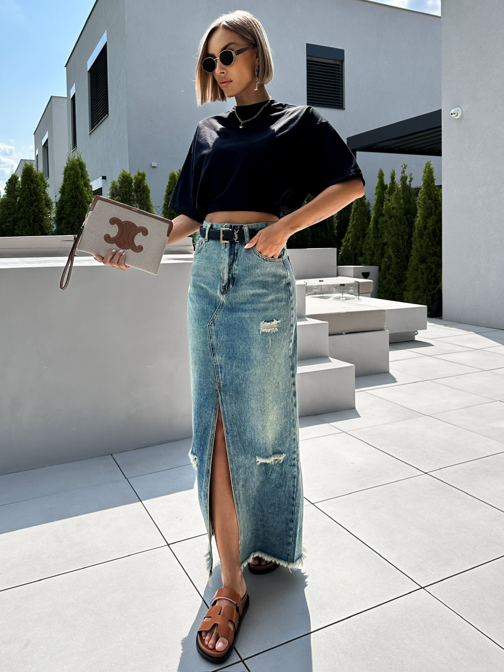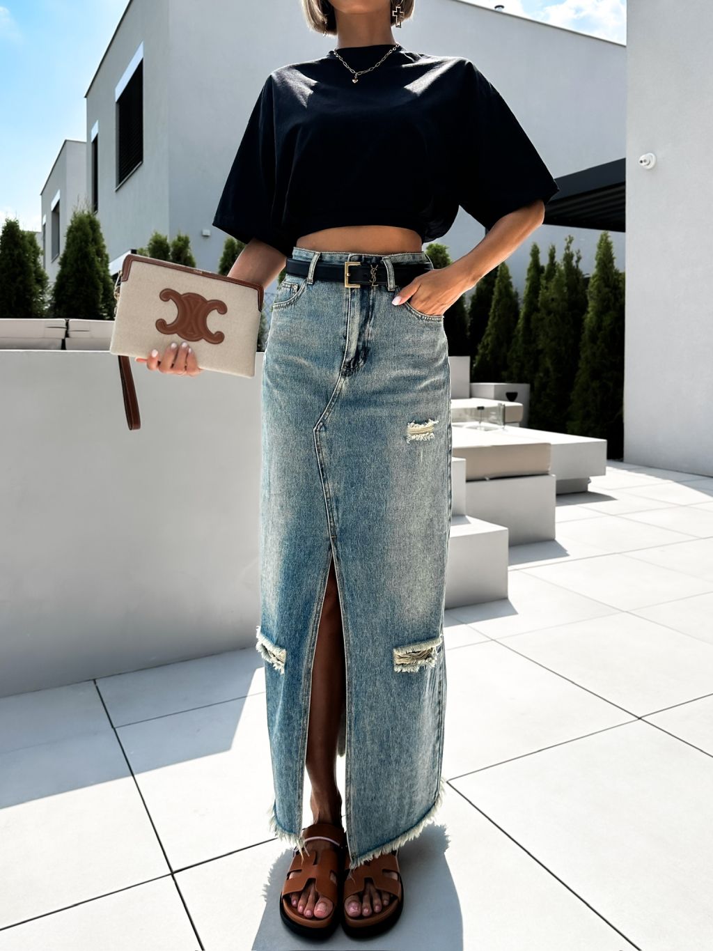Modrá dlouhá džinová maxi sukně KIRILO