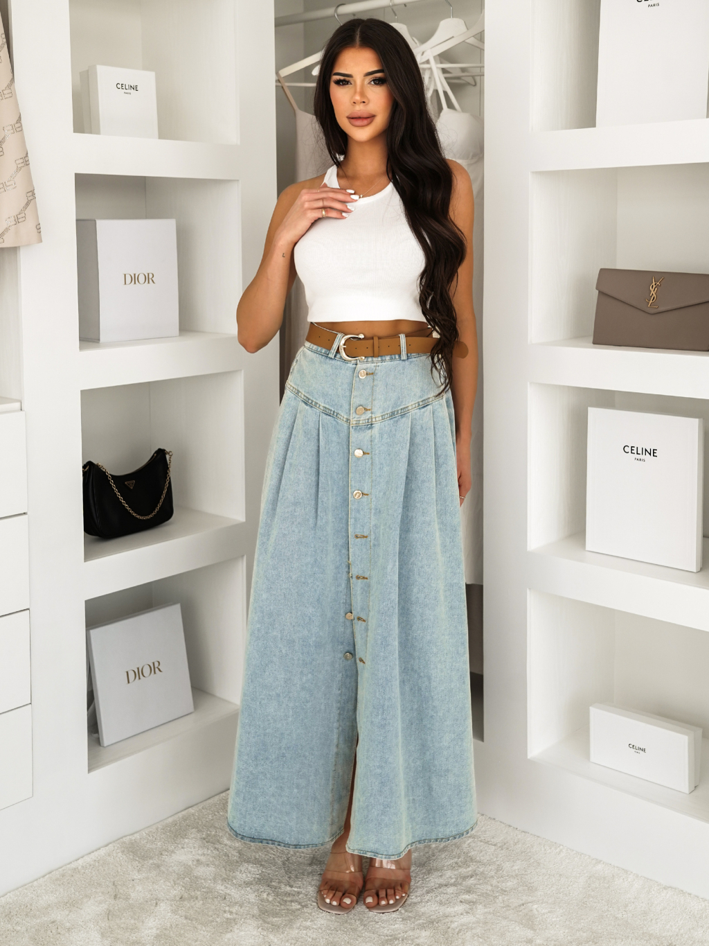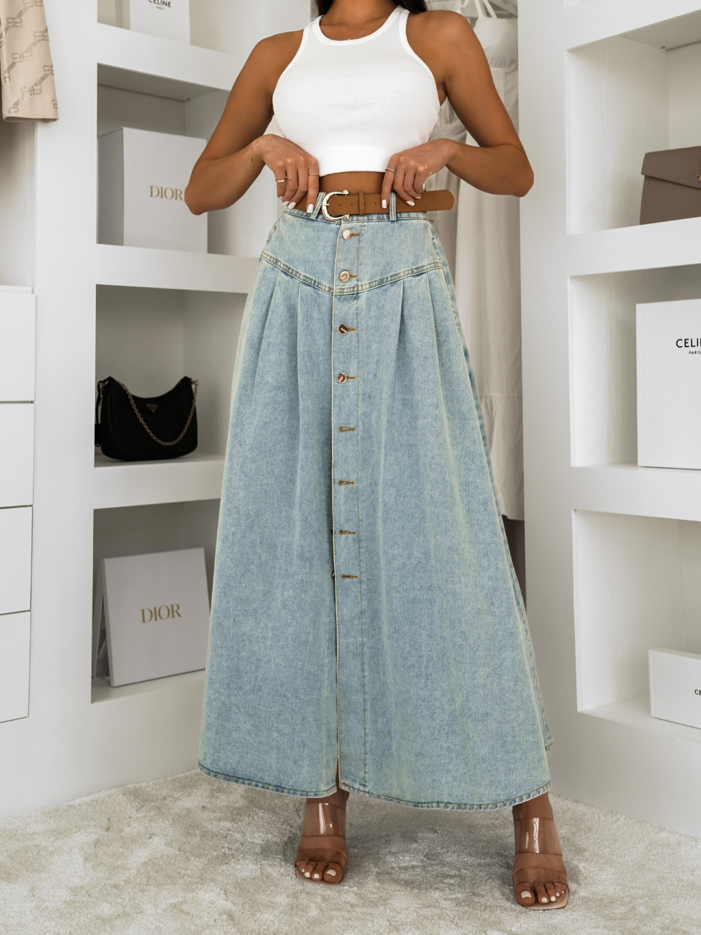 Modrá dlouhá džínová sukně ALWARA s knoflíky