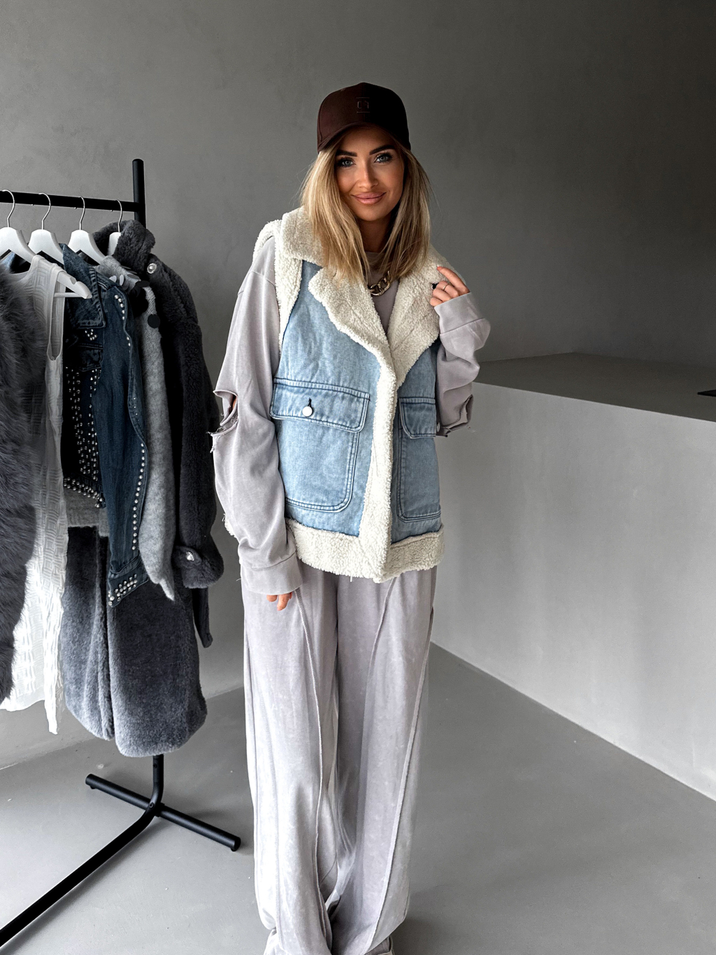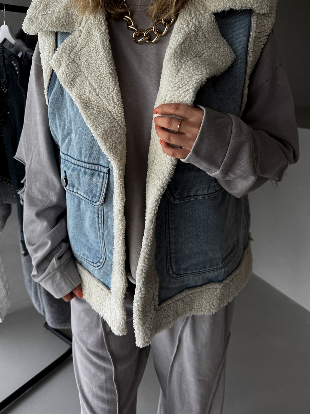 Modrá zateplená džínová vesta KRISZT