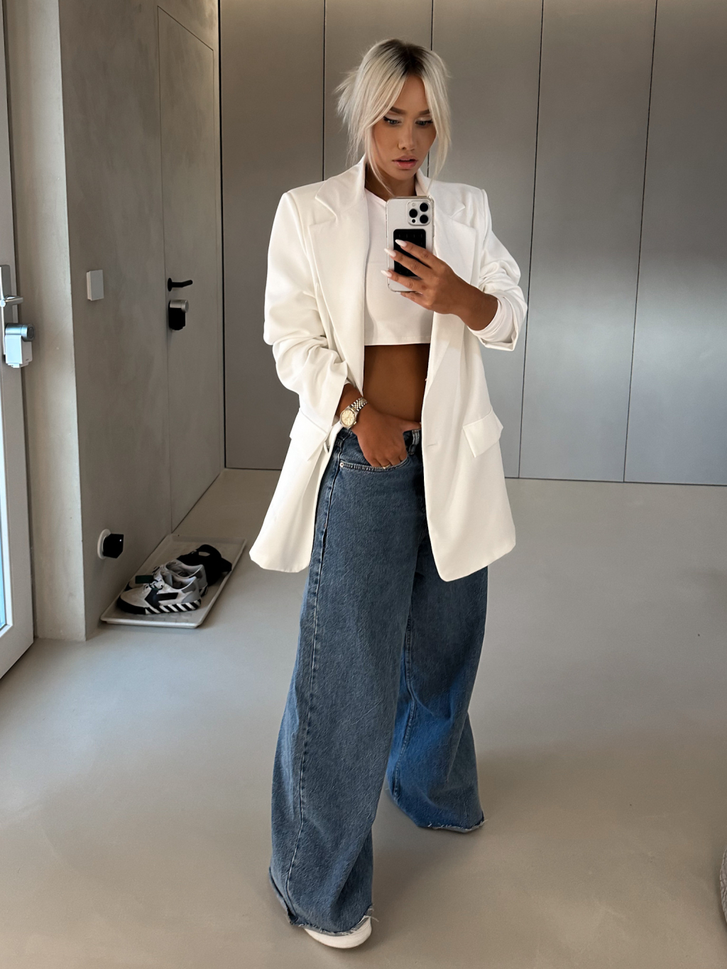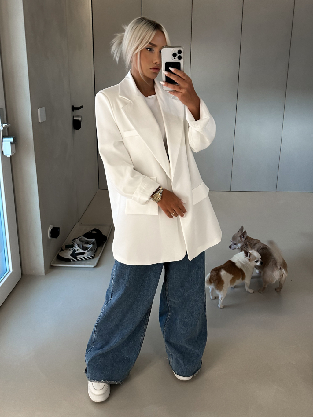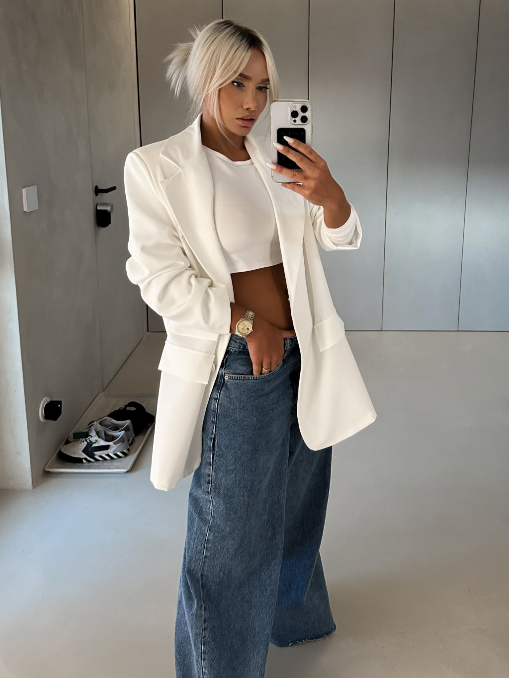 Bílé oversize maxi sako NAKLOV s vycpávkami na ramenou