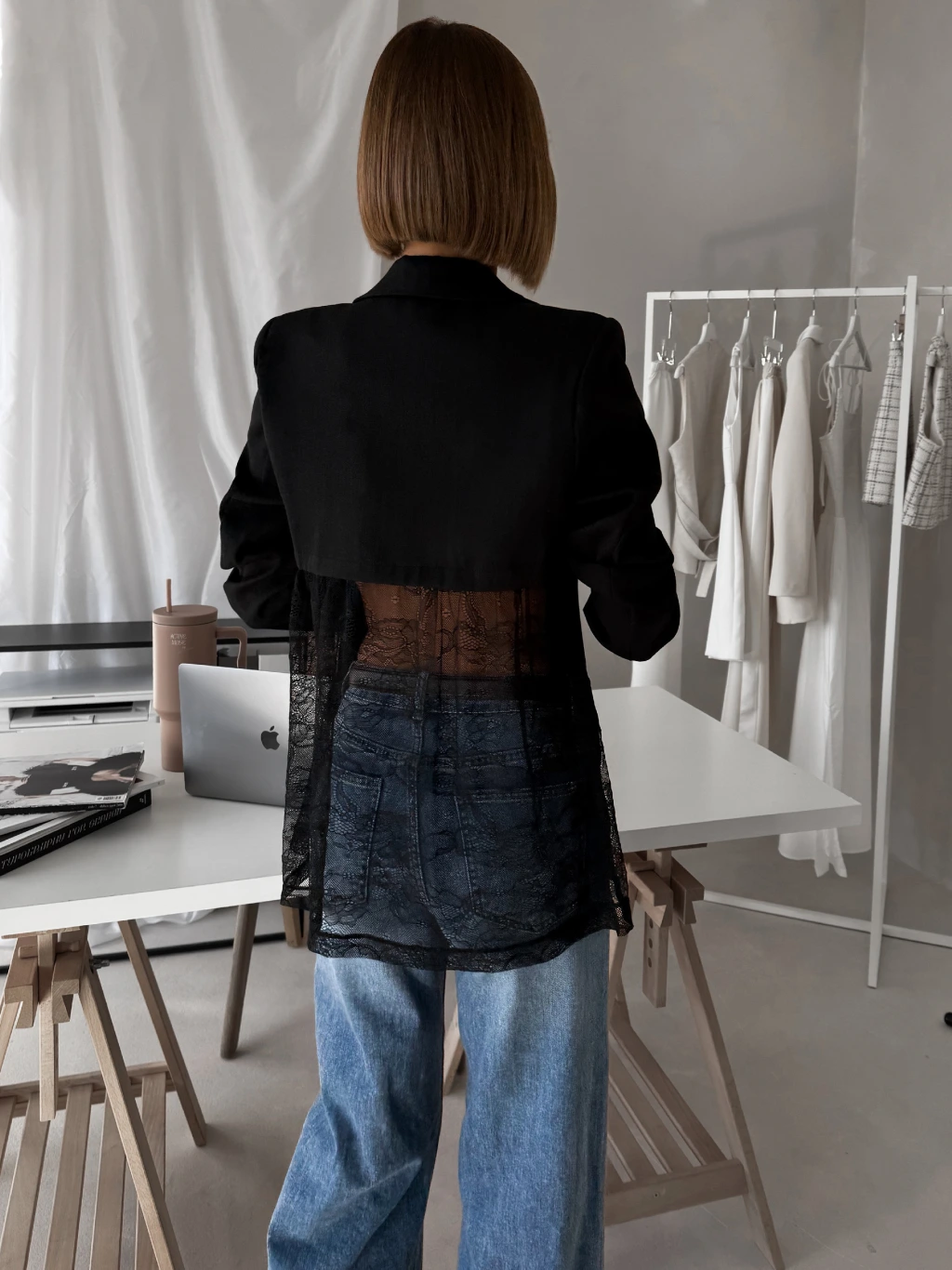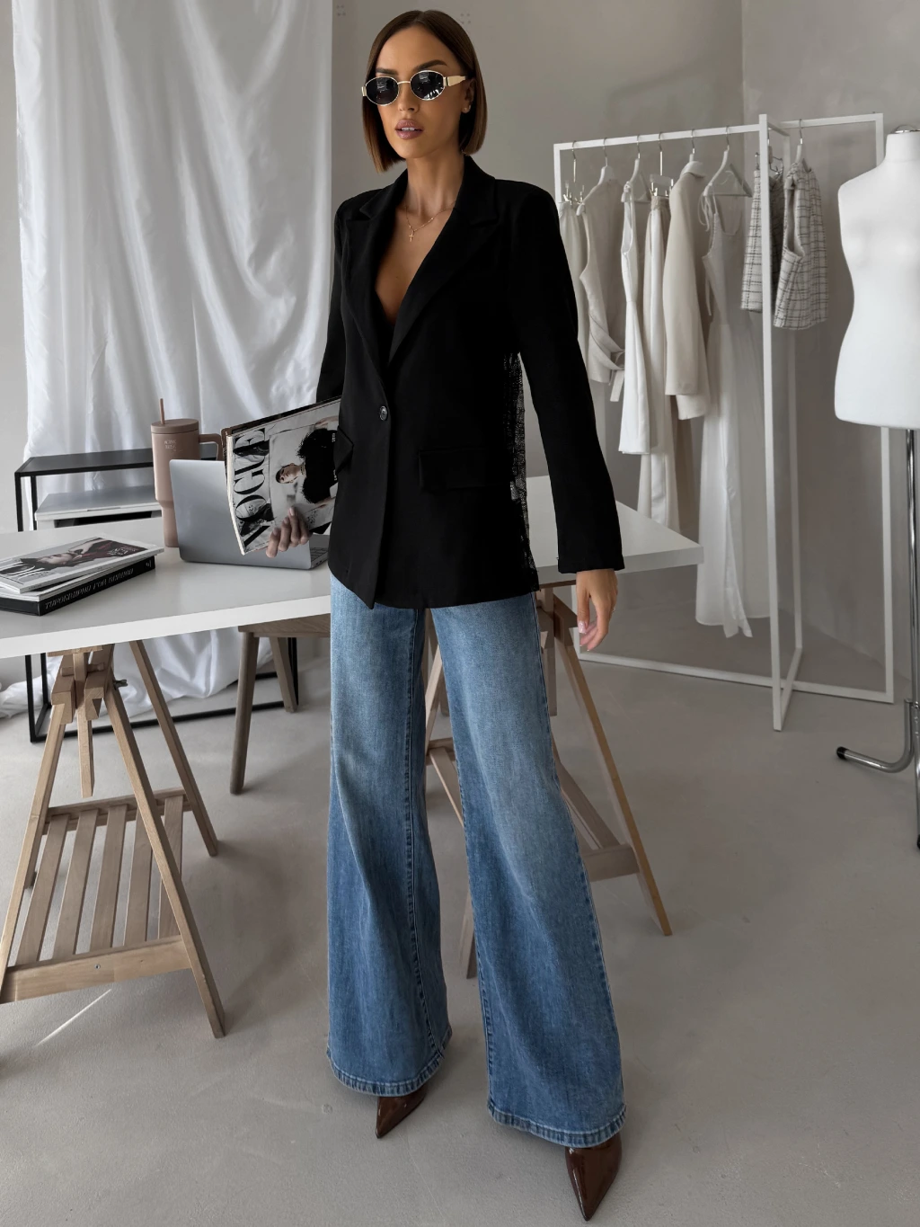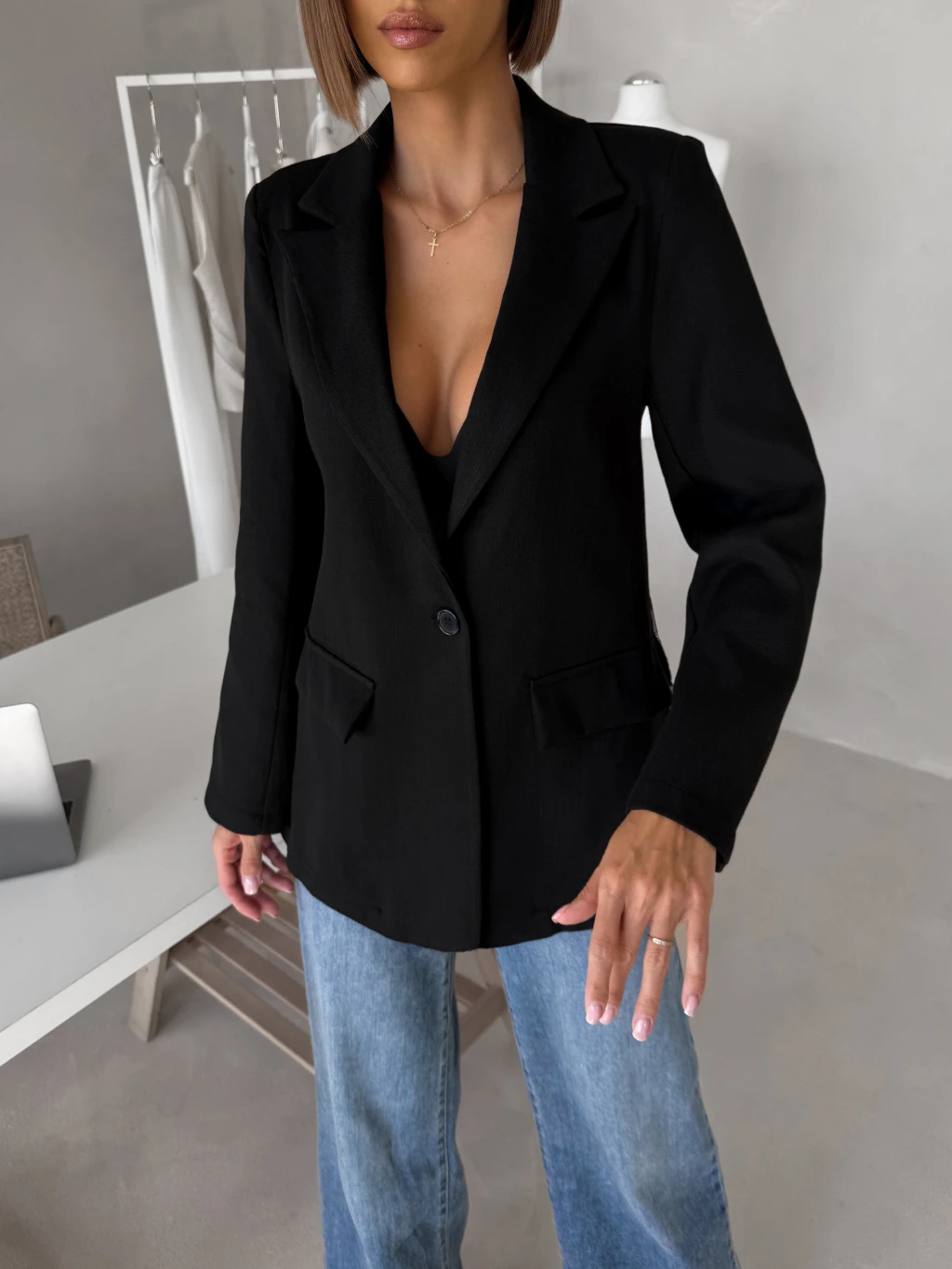Černé elegantní stylové sako SOLARI s krajkou