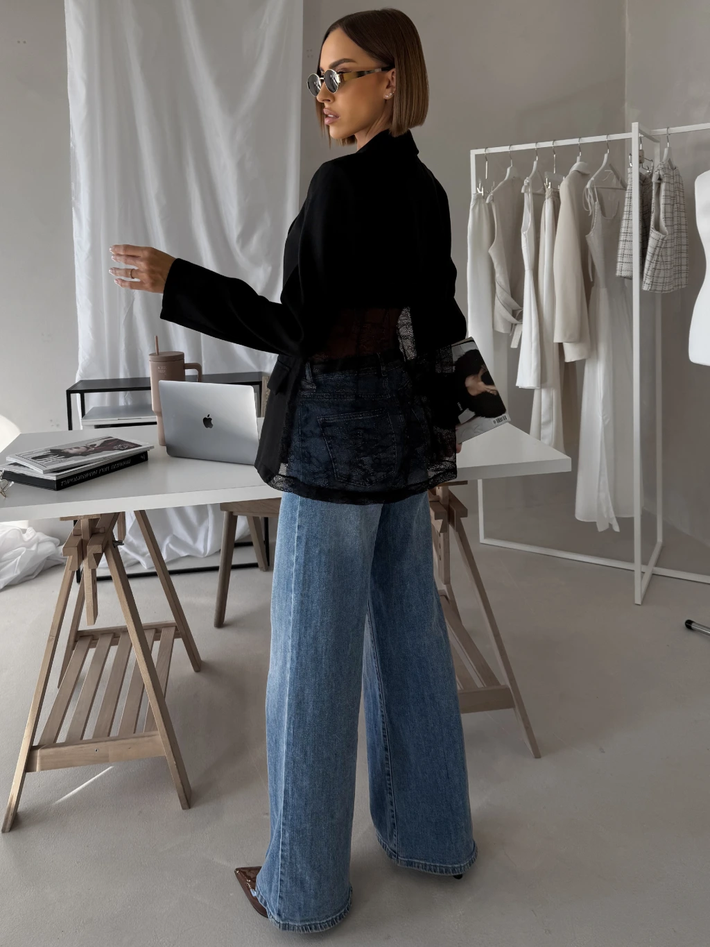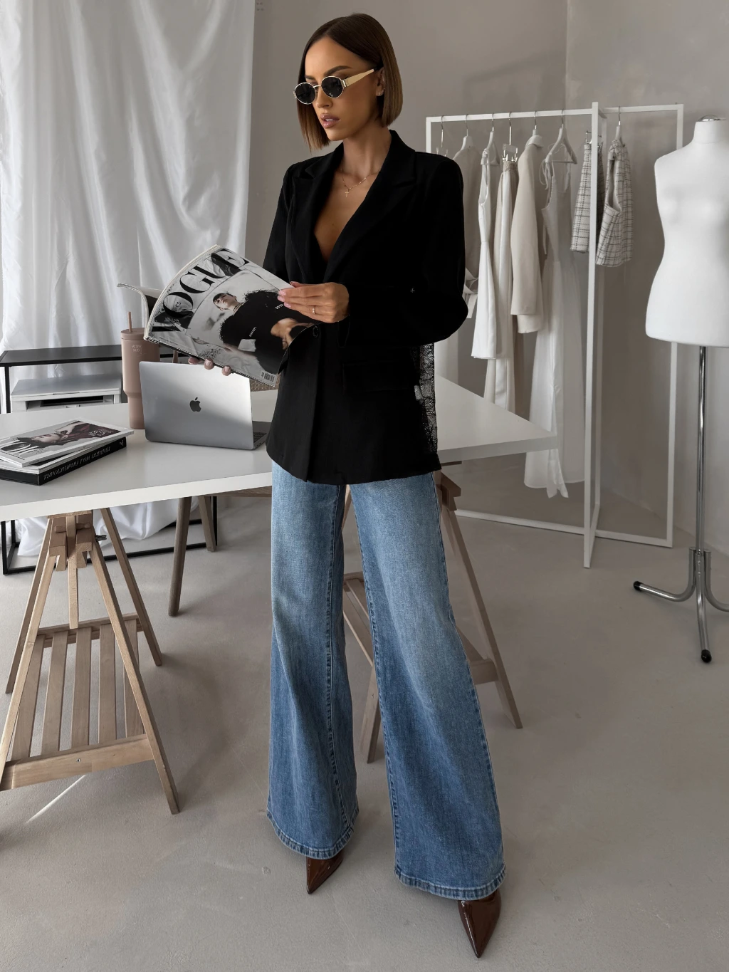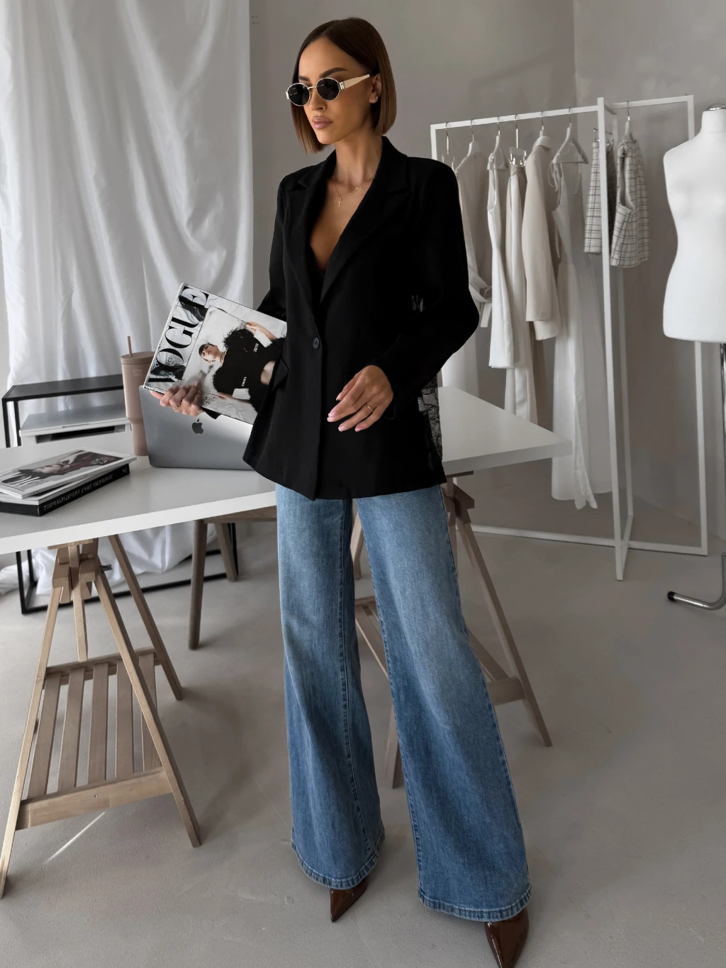 Černé elegantní stylové sako SOLARI s krajkou