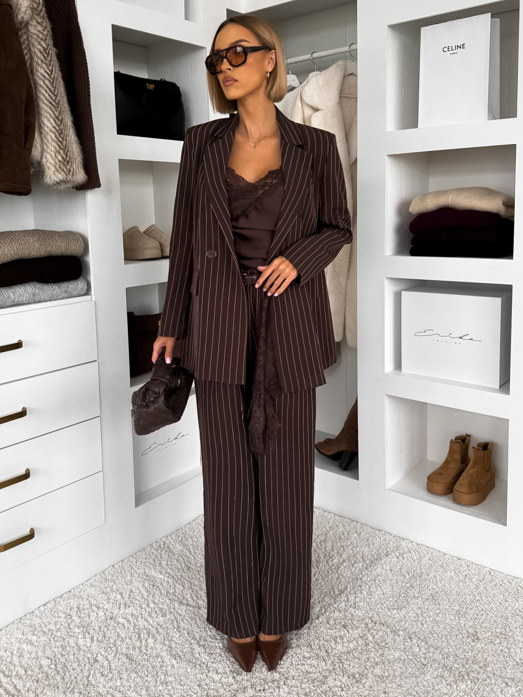 Hnědé pruhované elegantní oversize sako LEXUMA