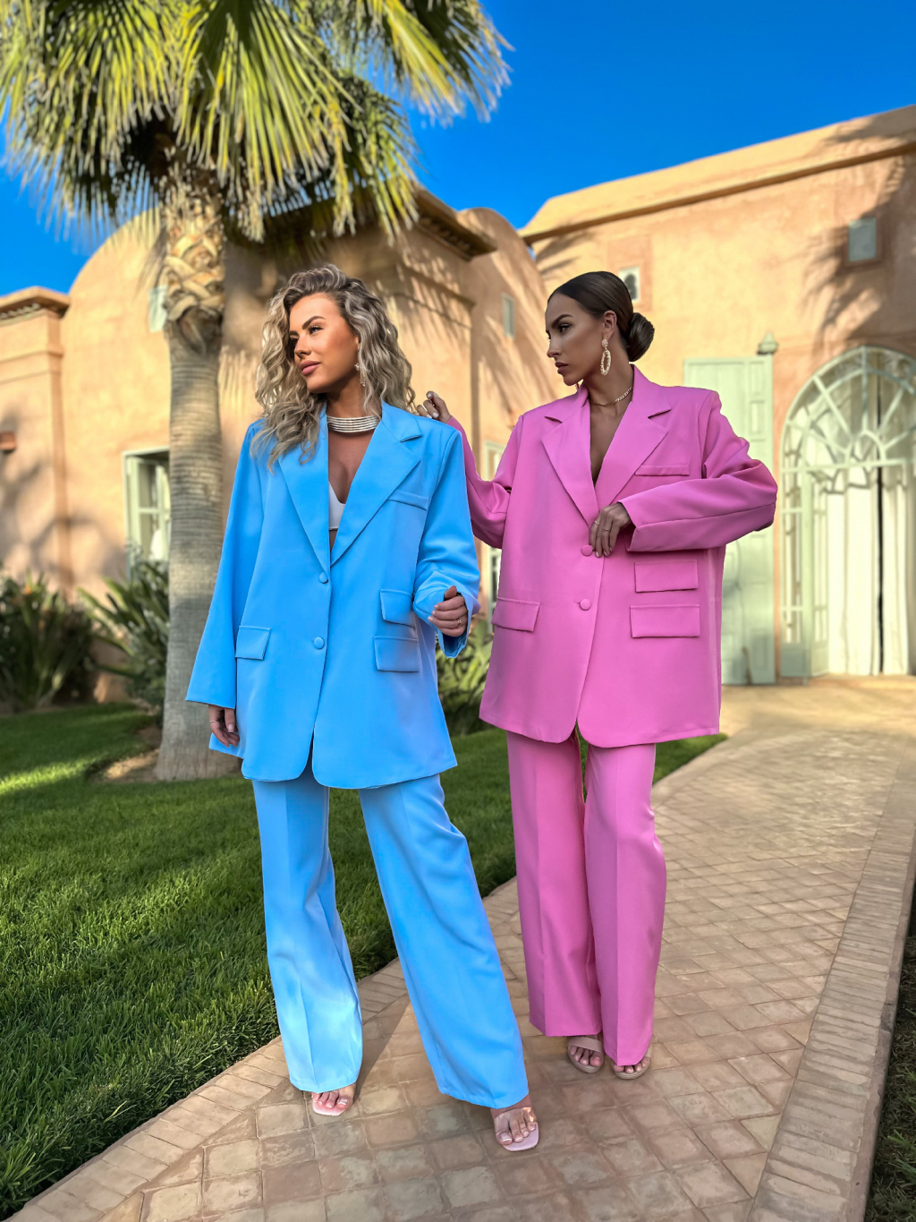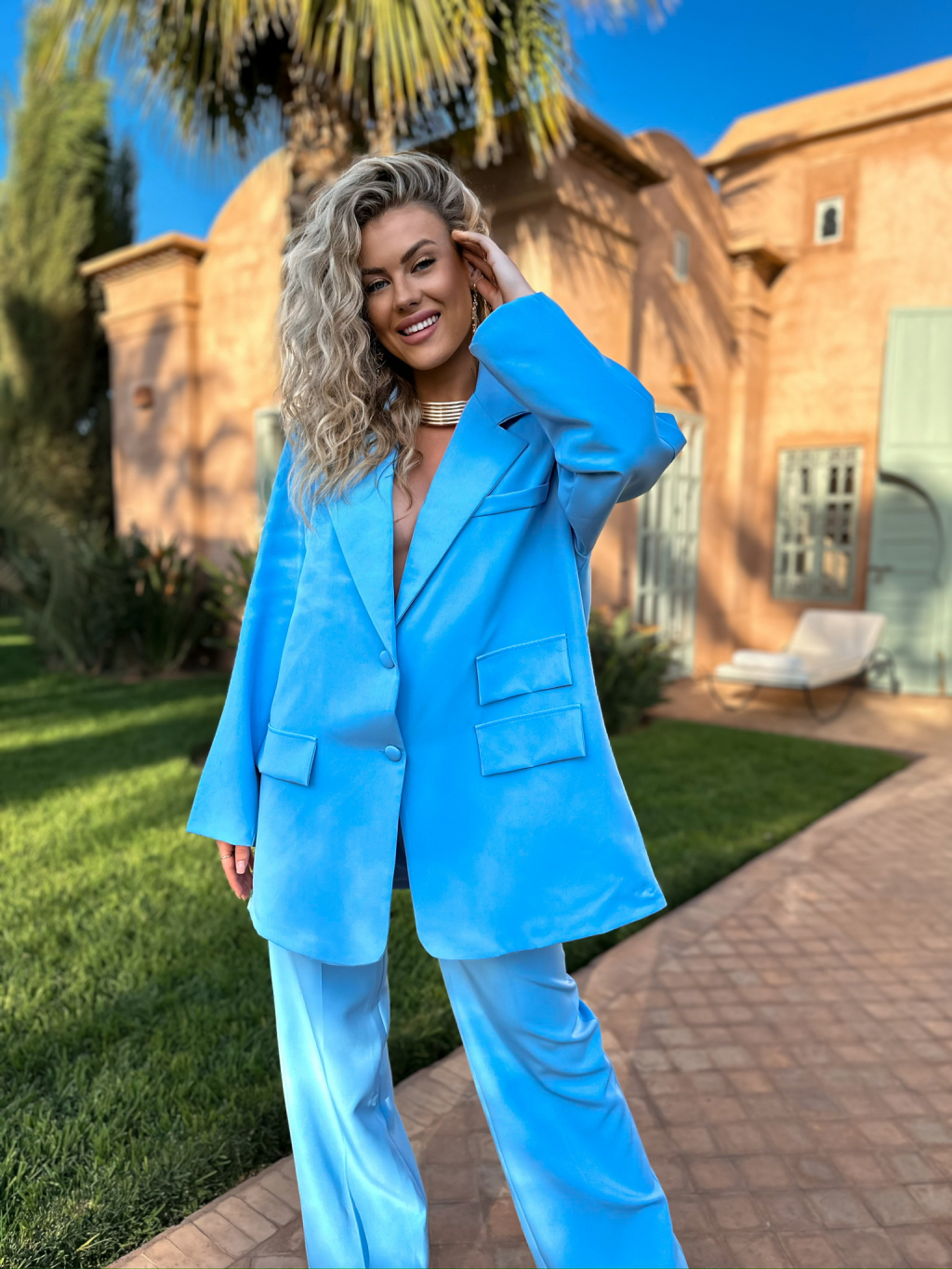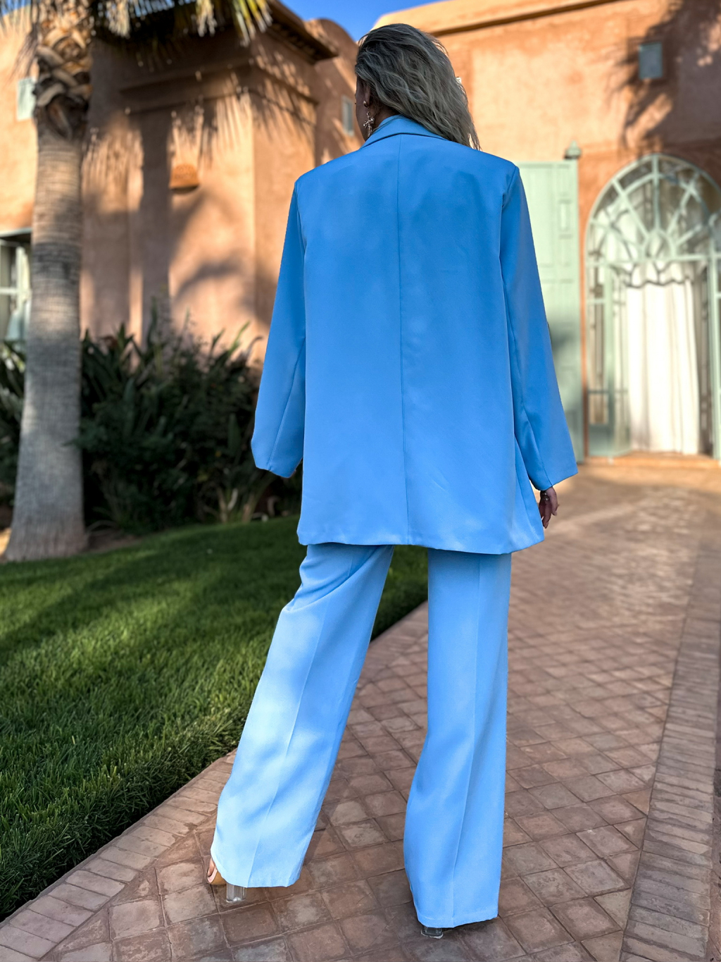 Modré oversize maxi sako NAKLOV s vycpávkami na ramenou