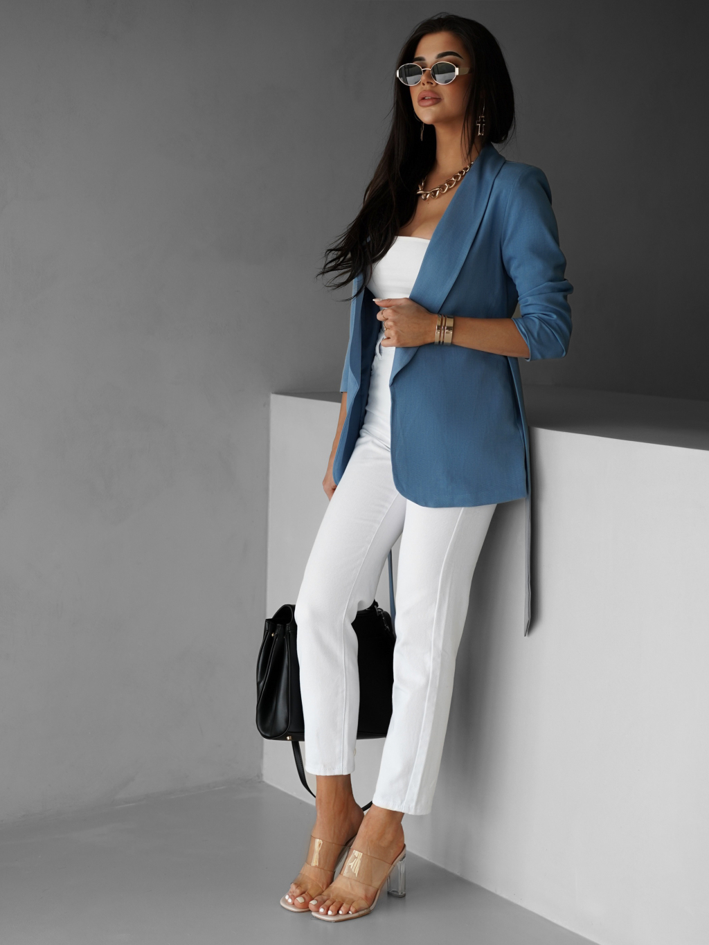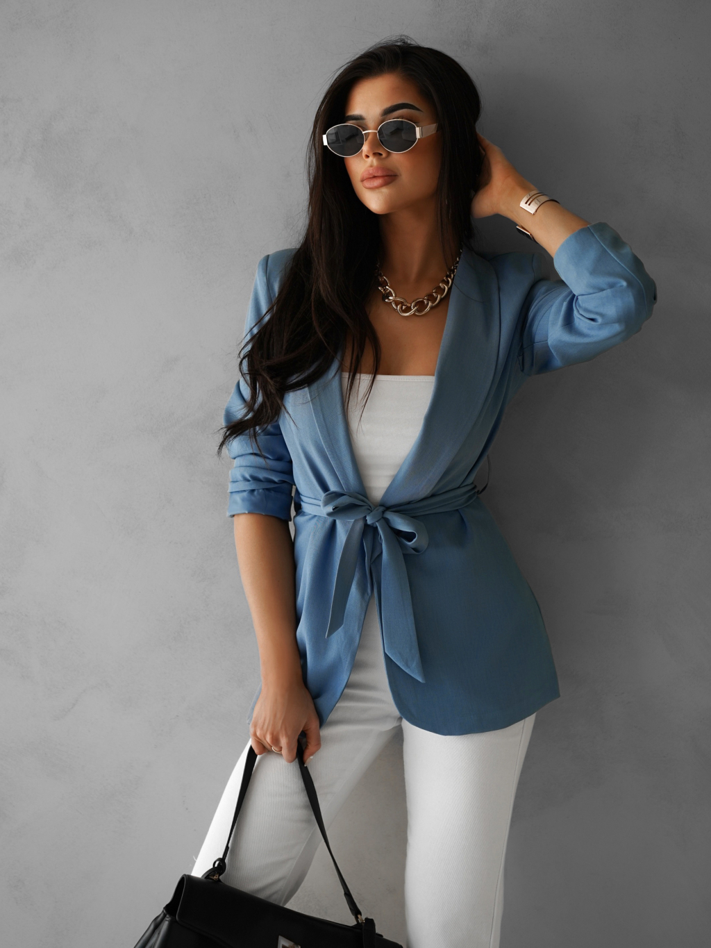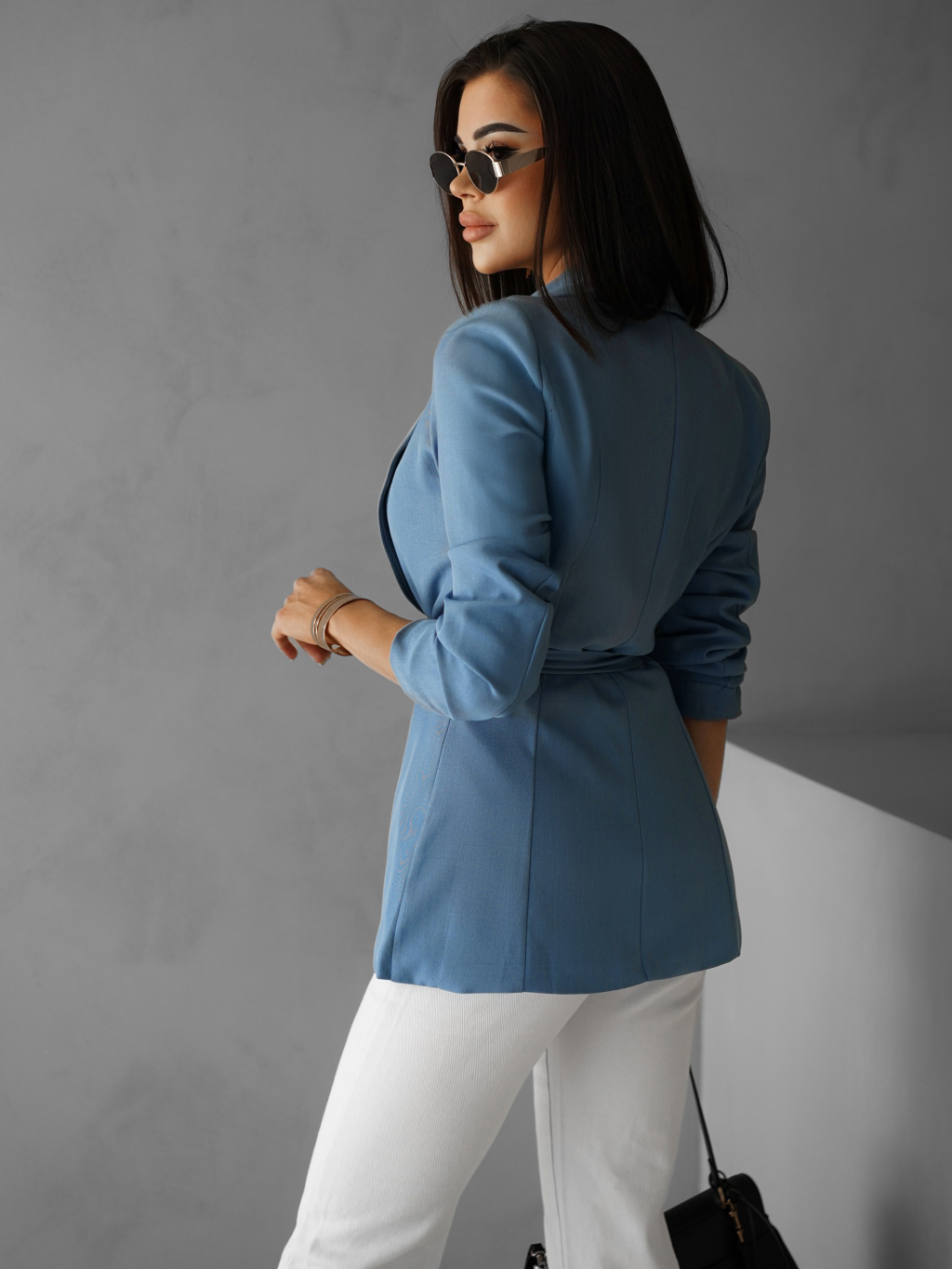 Modré vypasované sako ZABOET s páskem