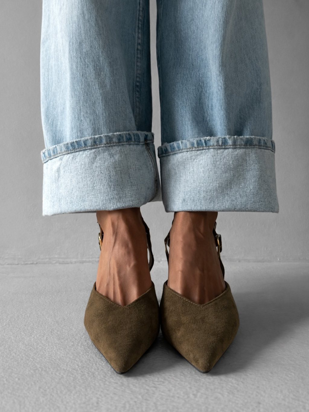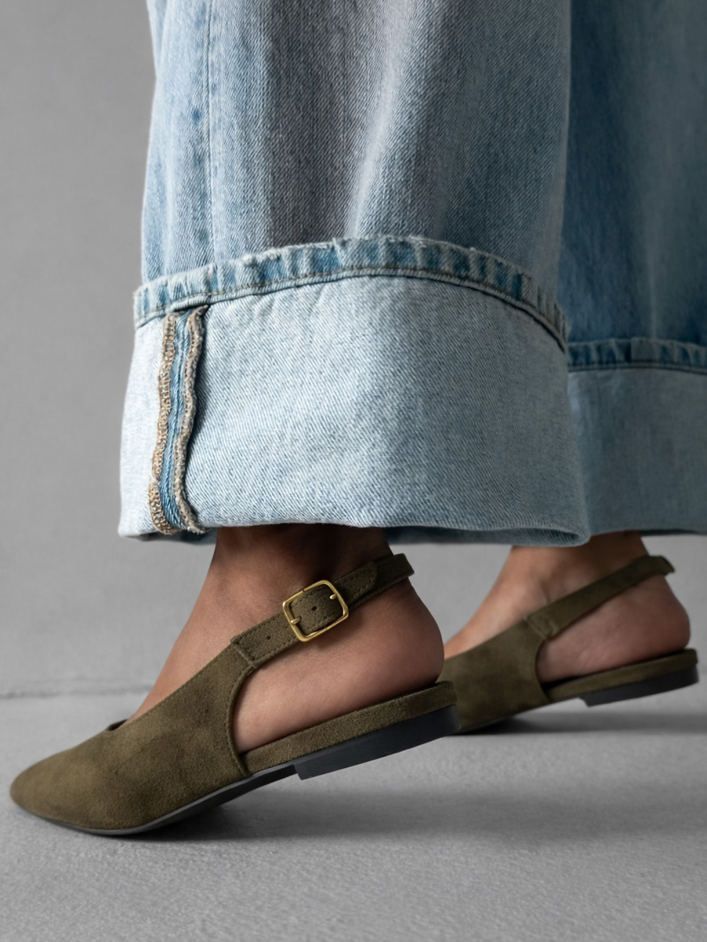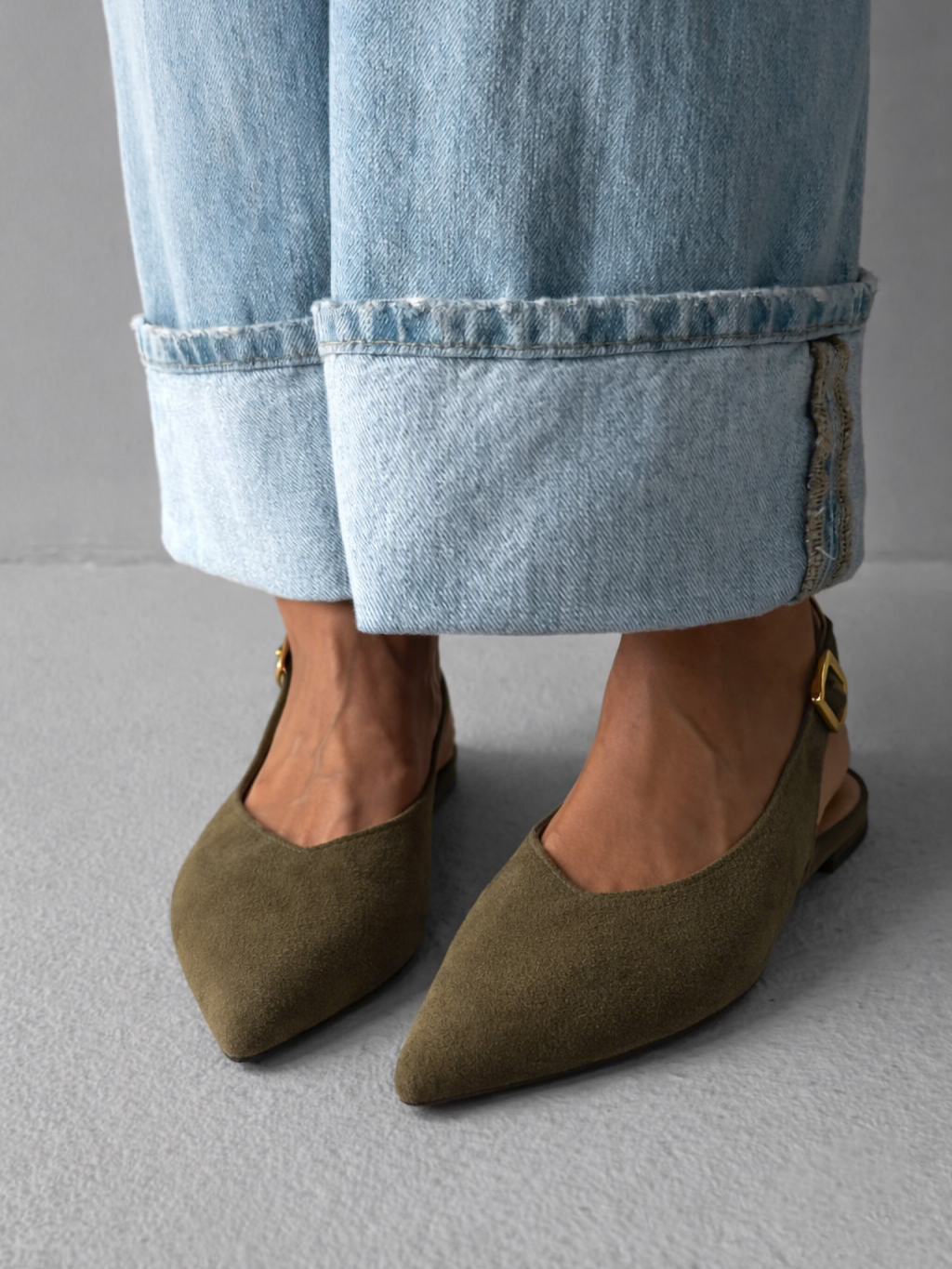 Khaki semišové nazouvací baleríny GENYRA s odkrytou patou