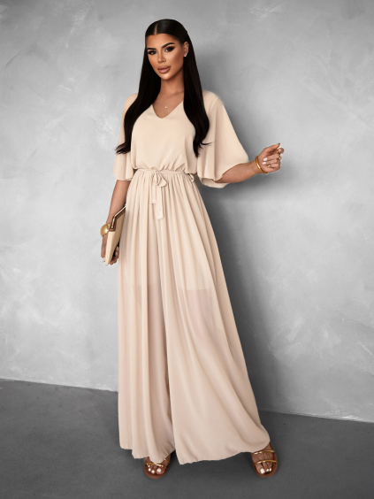 Béžový krátký vzdušný overal BOBBIT s výstřihem