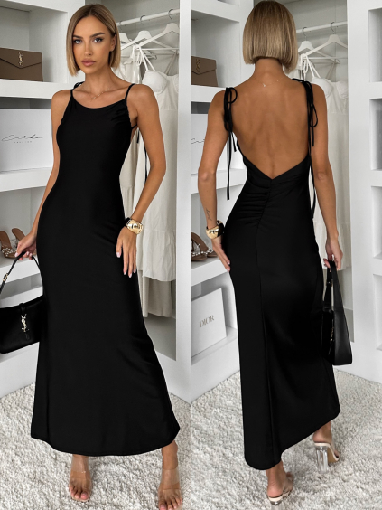 Černé dlouhé šaty OSTIVEN s hlubovým výstřihem