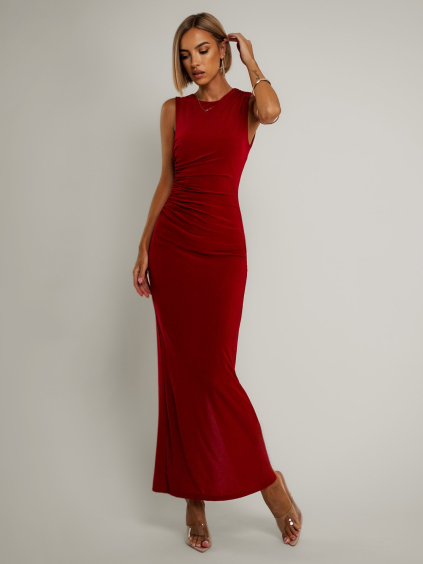 Červené dlouhé přiléhavé šaty TULLIA na ramínka