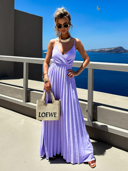 Fialové dlouhé plisované šaty SUNLOVE na ramínka
