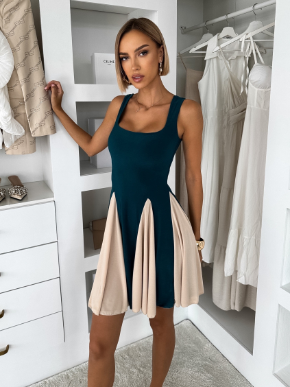 Petrolejové společenské midi šaty ETNAVA s rozparkem