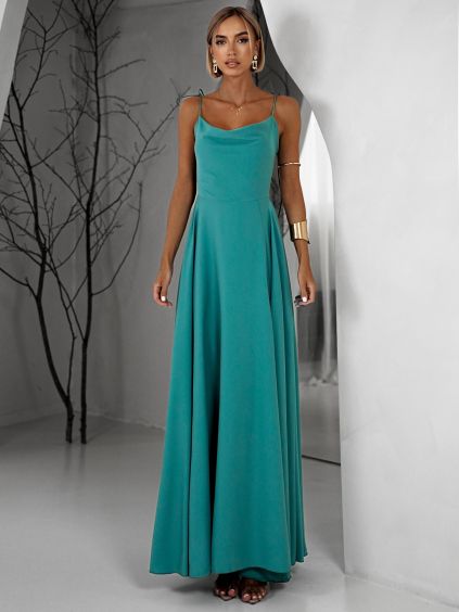Tyrkysové letní dlouhé květované šaty YSMERA