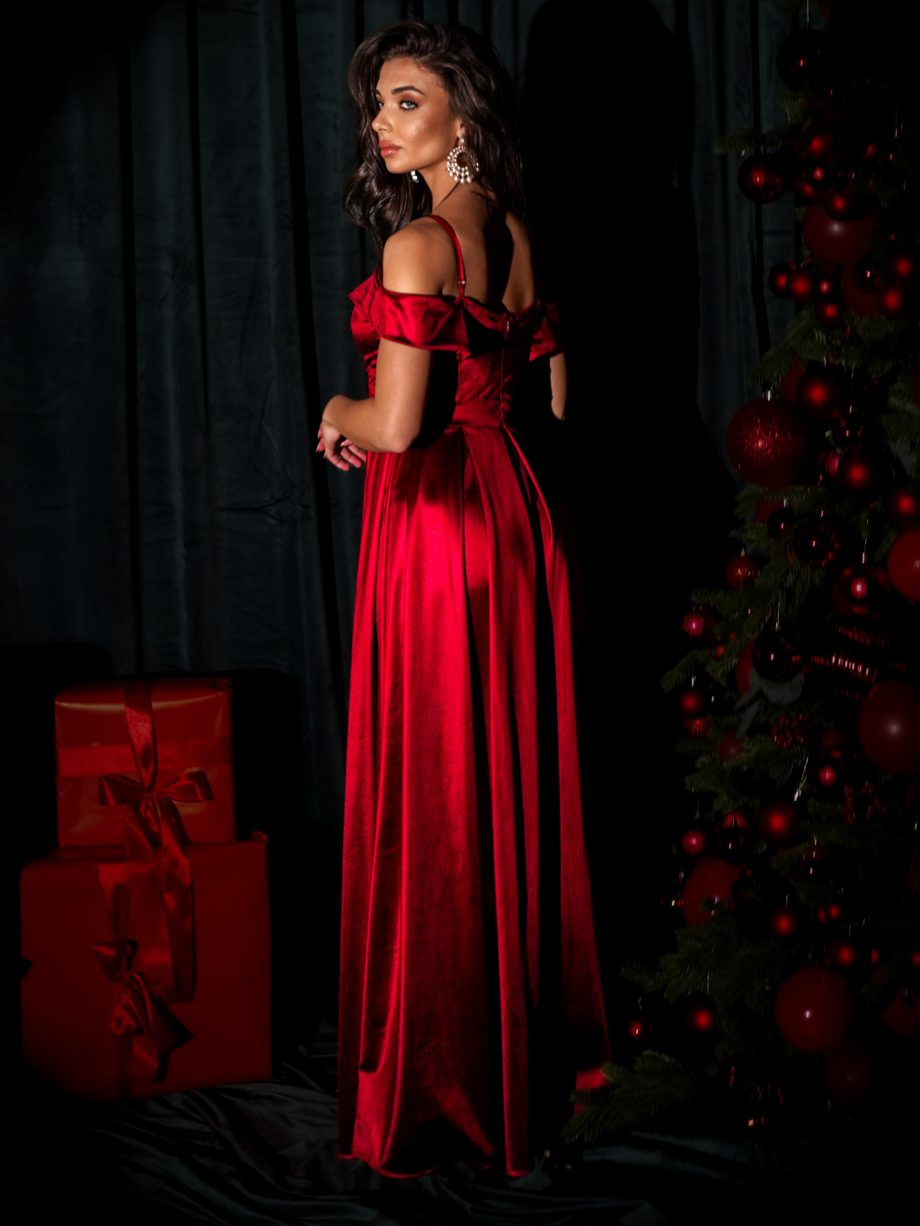 Červené saténové dlouhé společenské šaty DIJATA