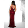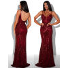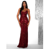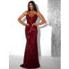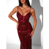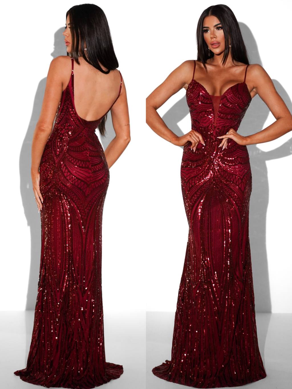 Vínové plesové dlouhé třpytivé šaty LAJSA s výstřihem