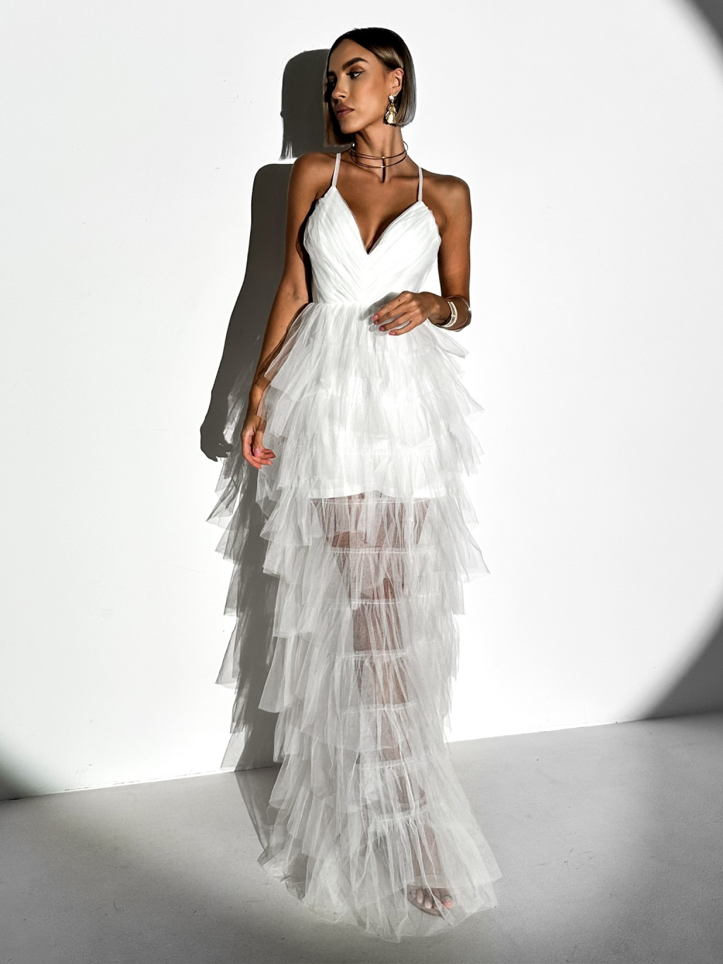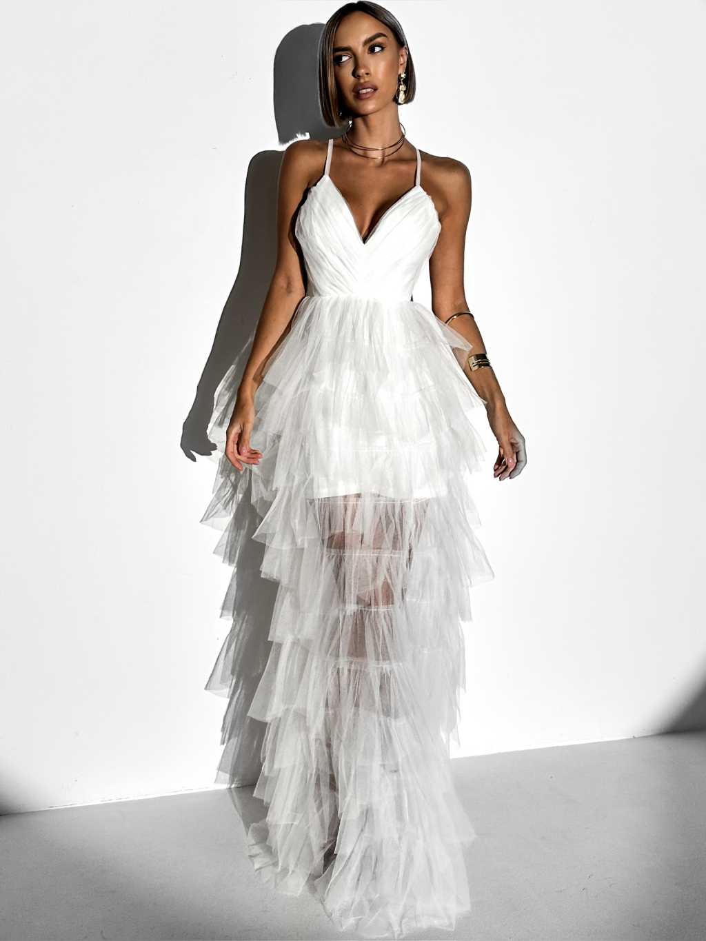 Bílé plesové dlouhé šaty AVERKI s tylovou sukní