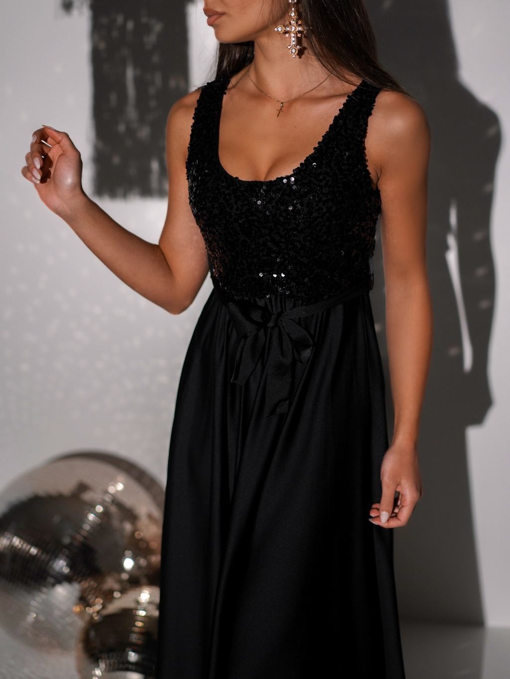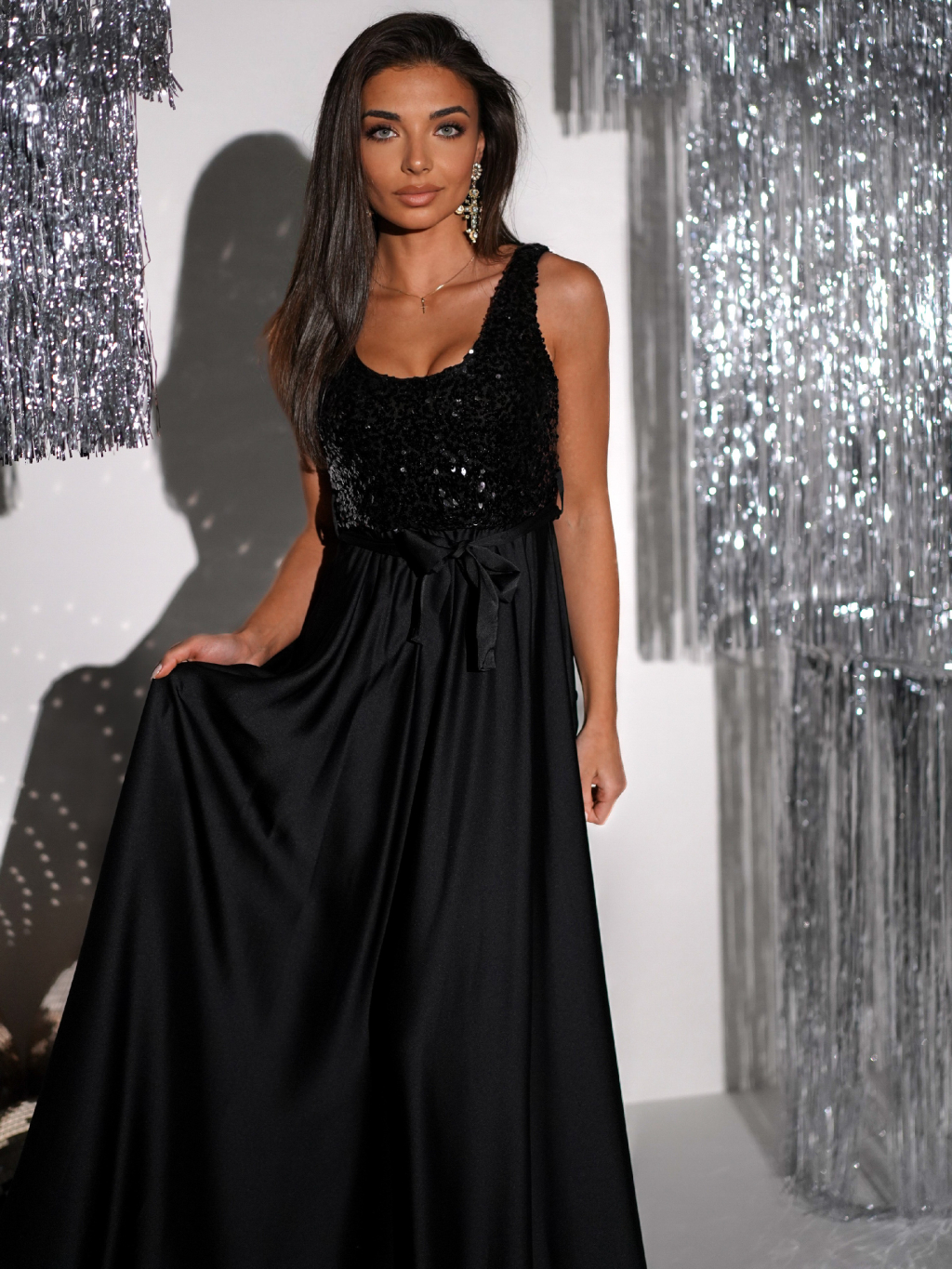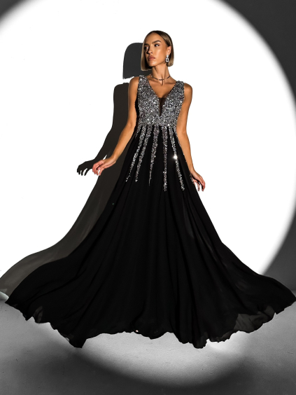 Černé dlouhé flitrované plesové šaty SAANA