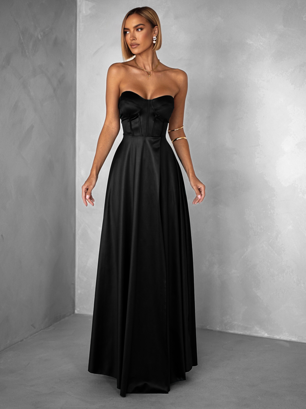 Černé dlouhé saténové šaty GYBRAL s korzetem