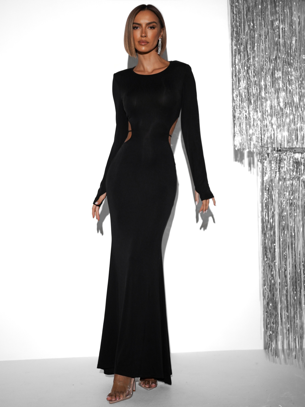Černé dlouhé večerní šaty KIMNAH s průstřihy