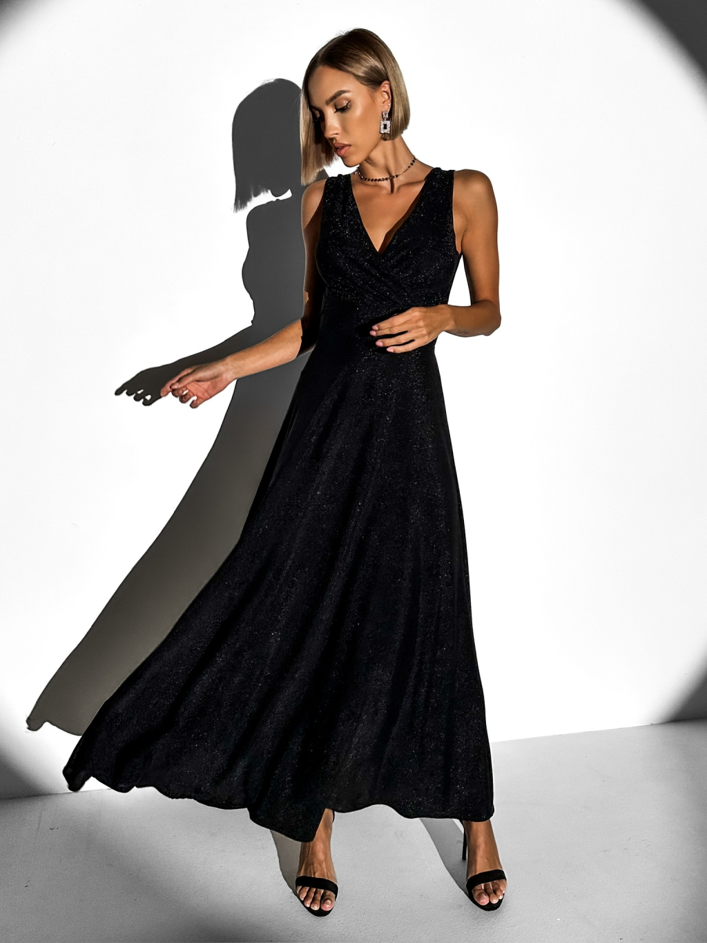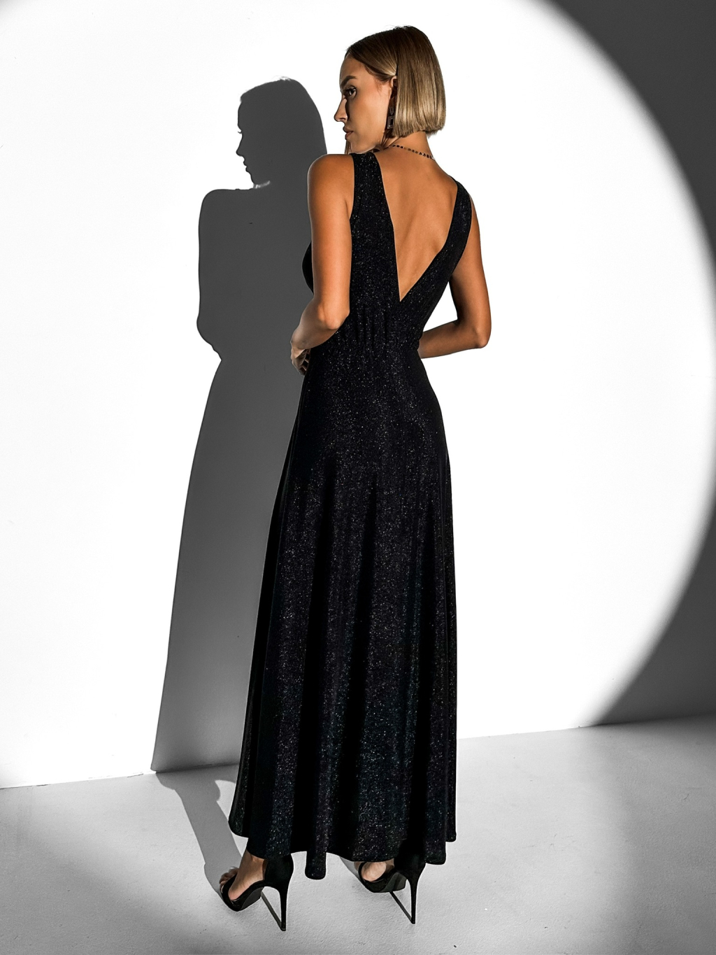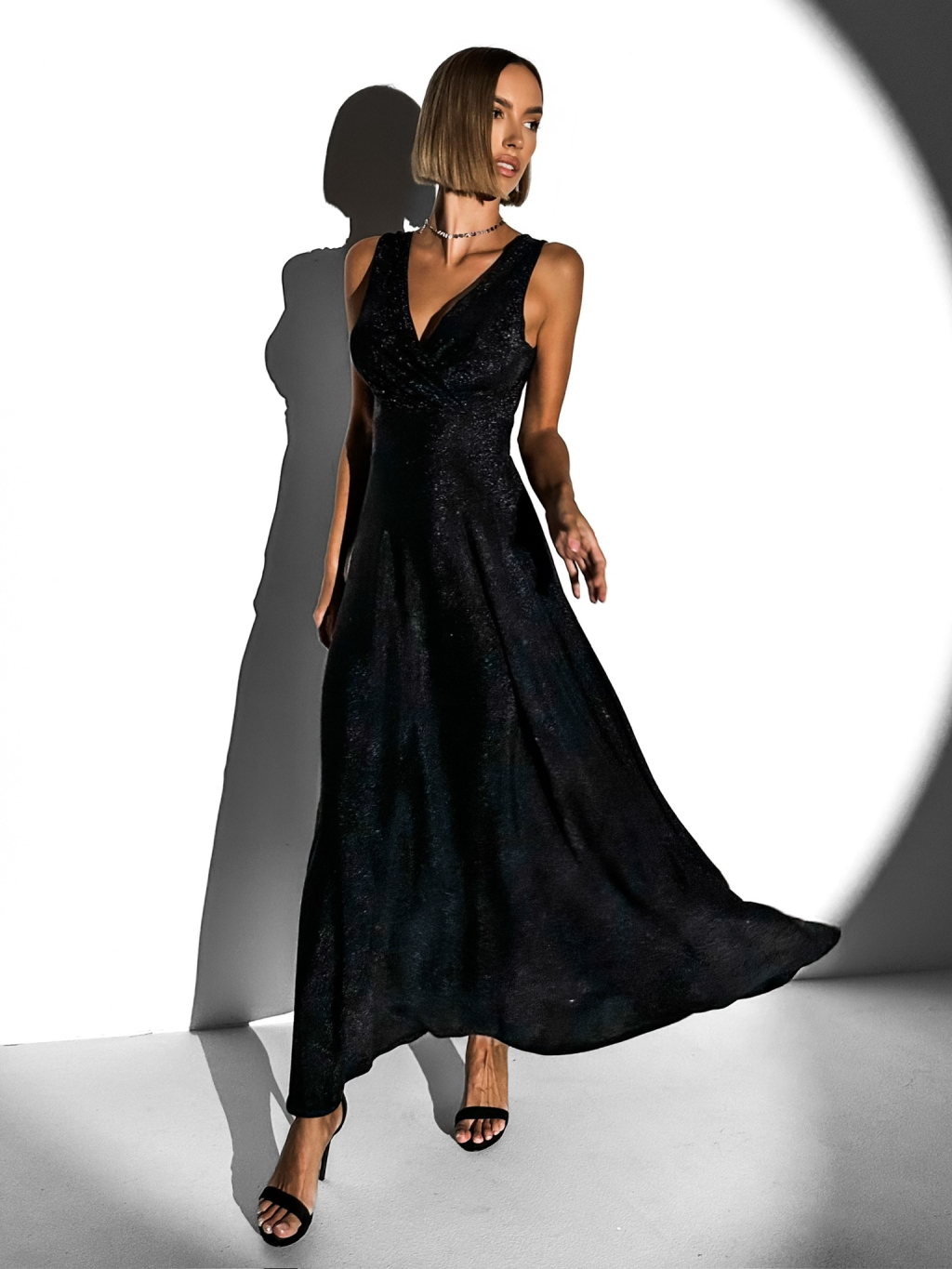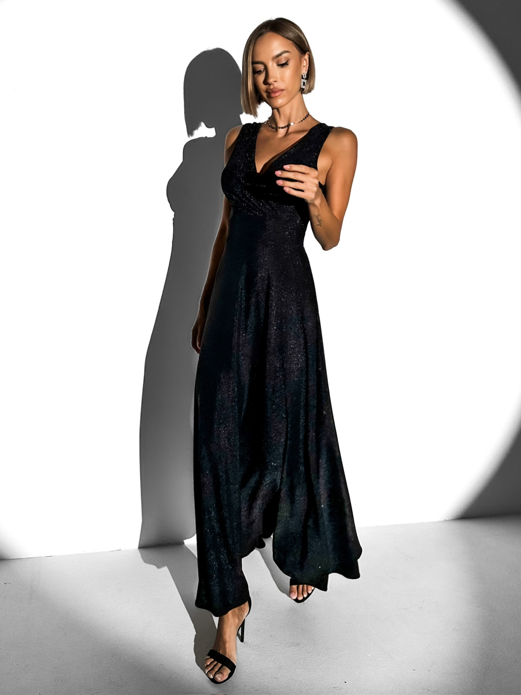 Černé třpytivé dlouhé elegantní šaty DUNJA