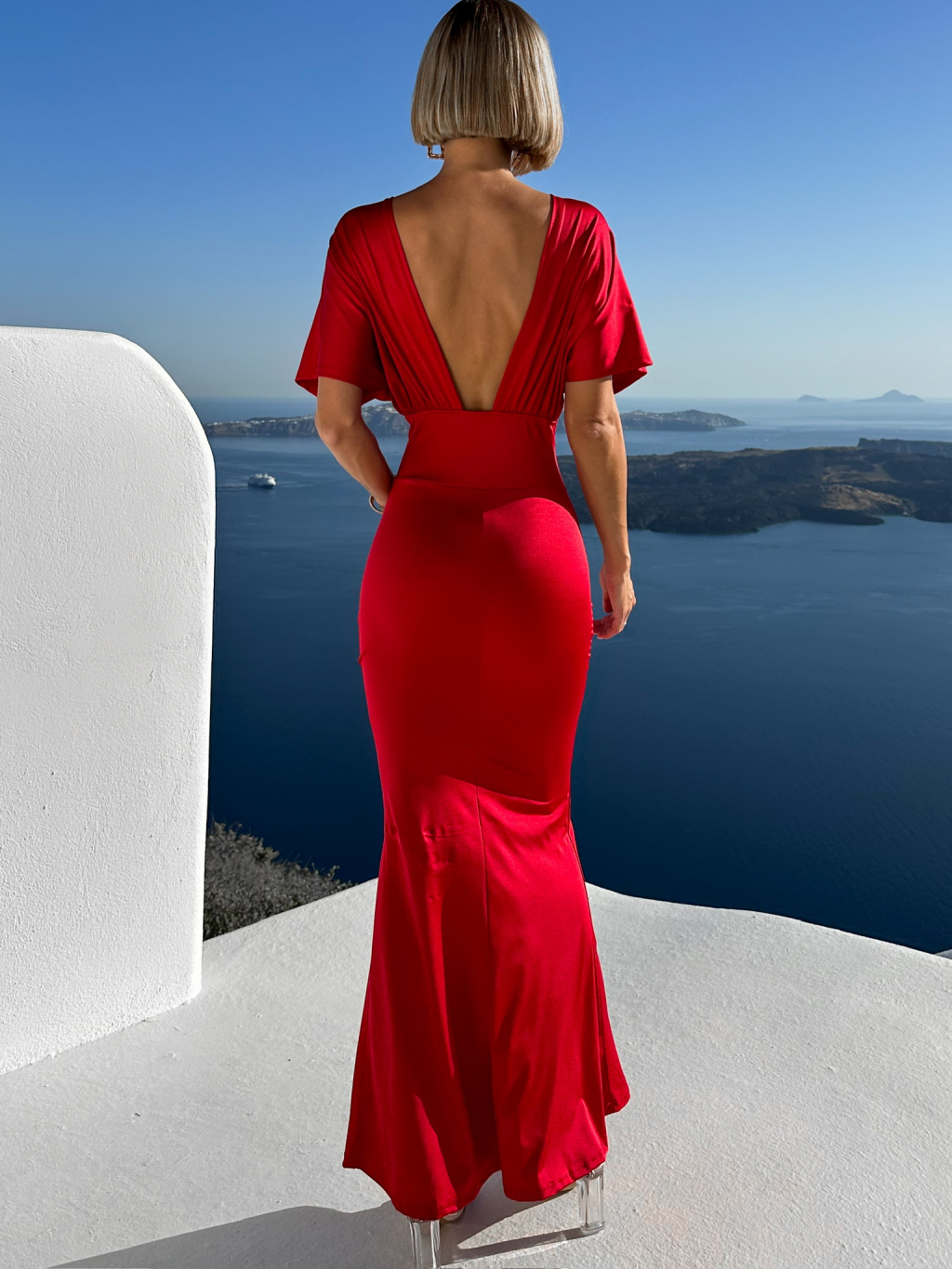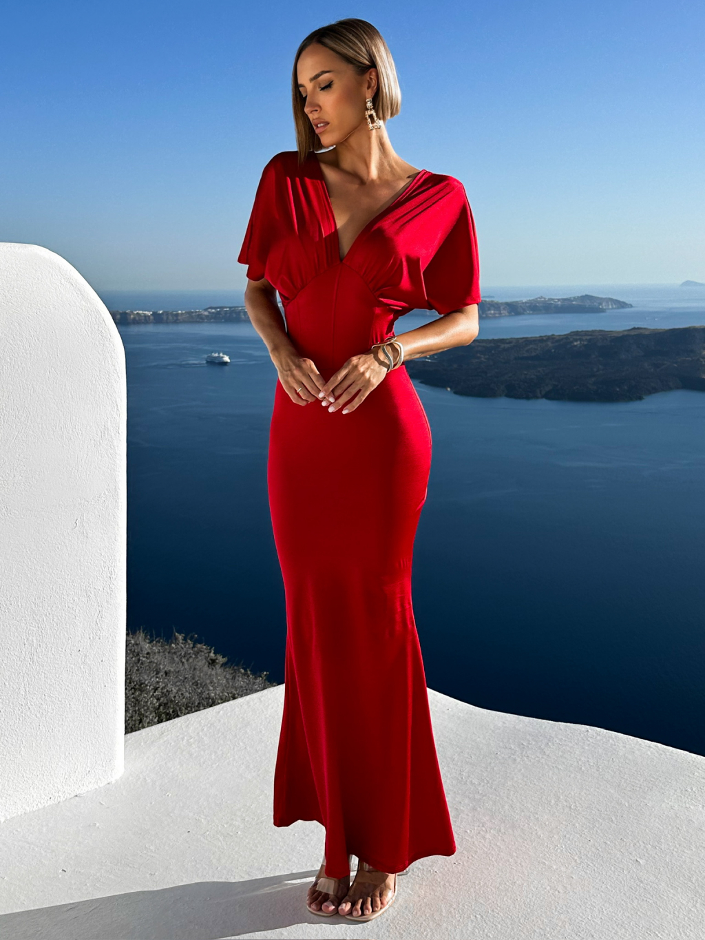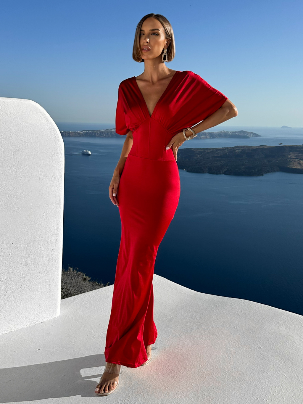 Červené elegantní šaty INVANCE s výstřihem do V