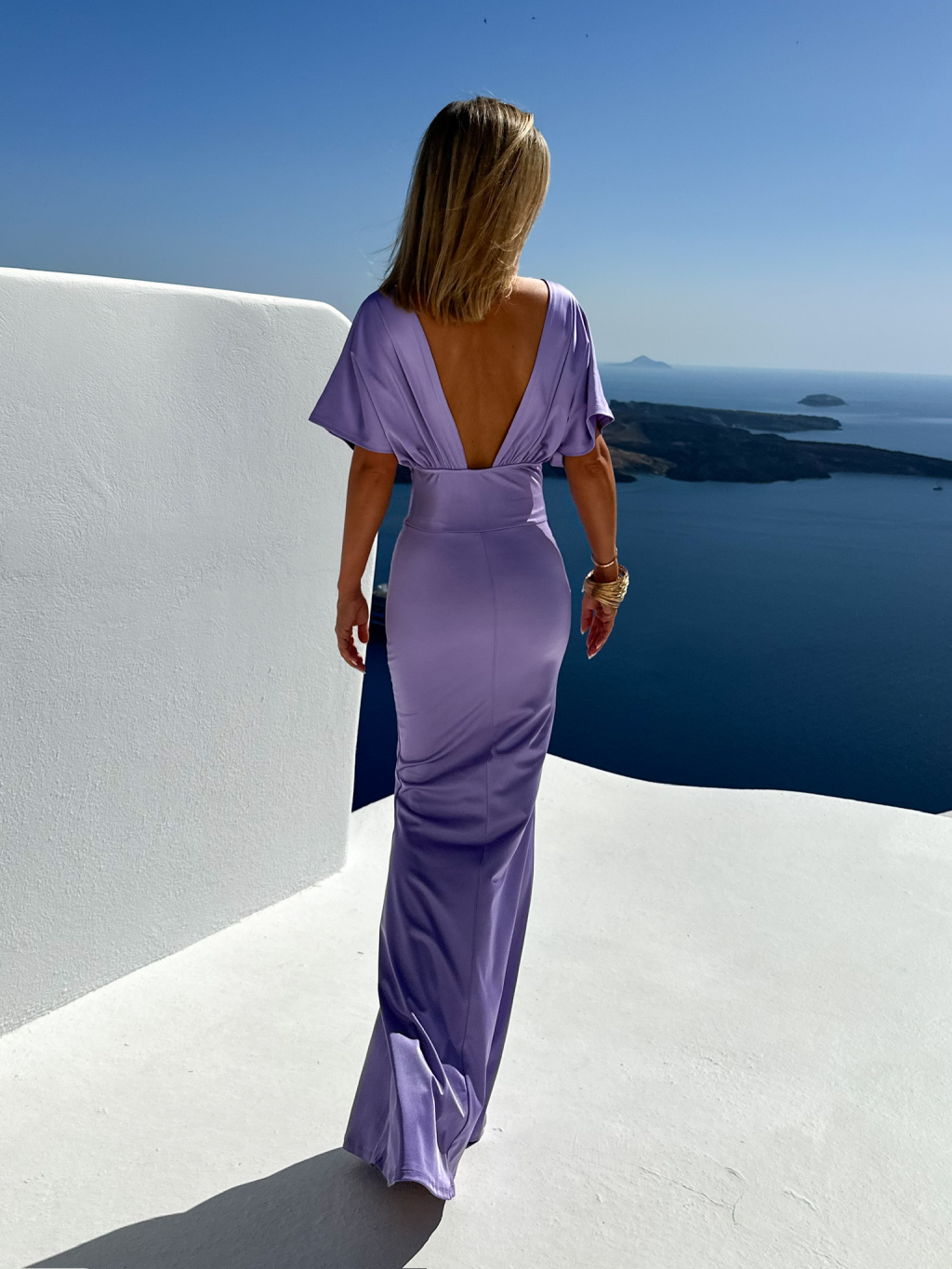 Fialové elegantní šaty INVANCE s výstřihem do V