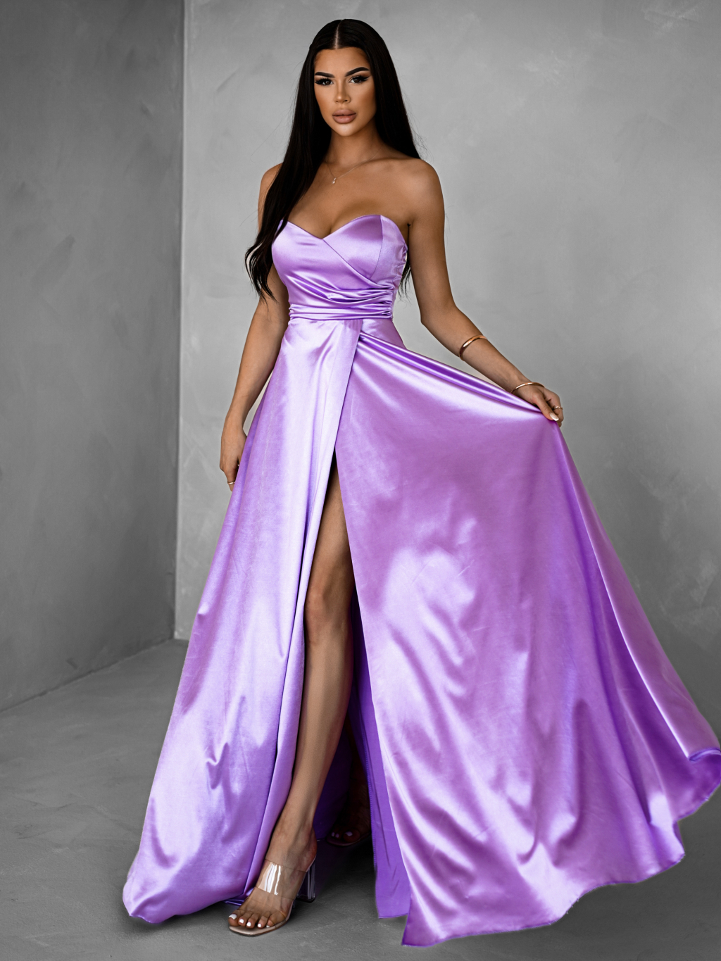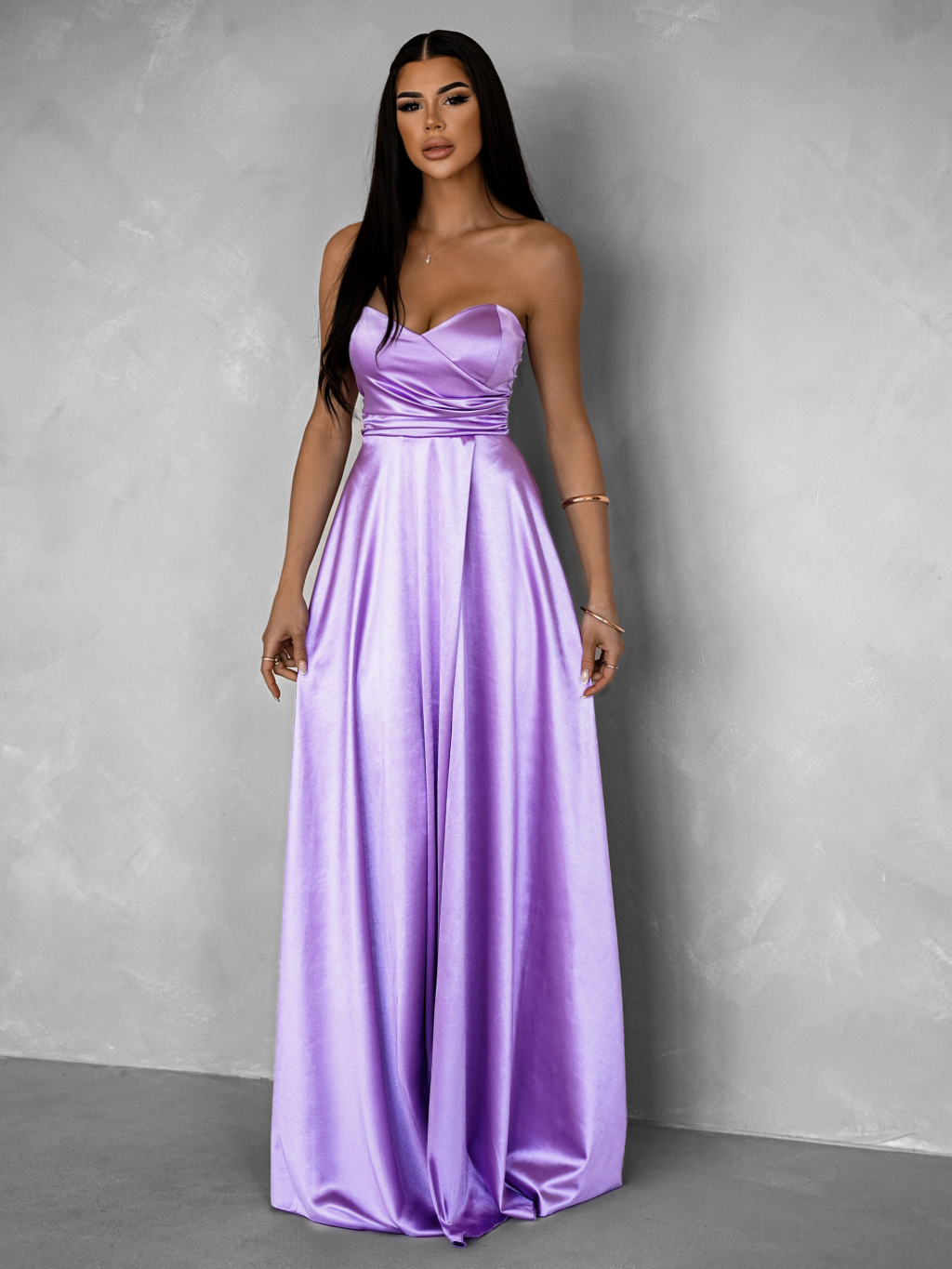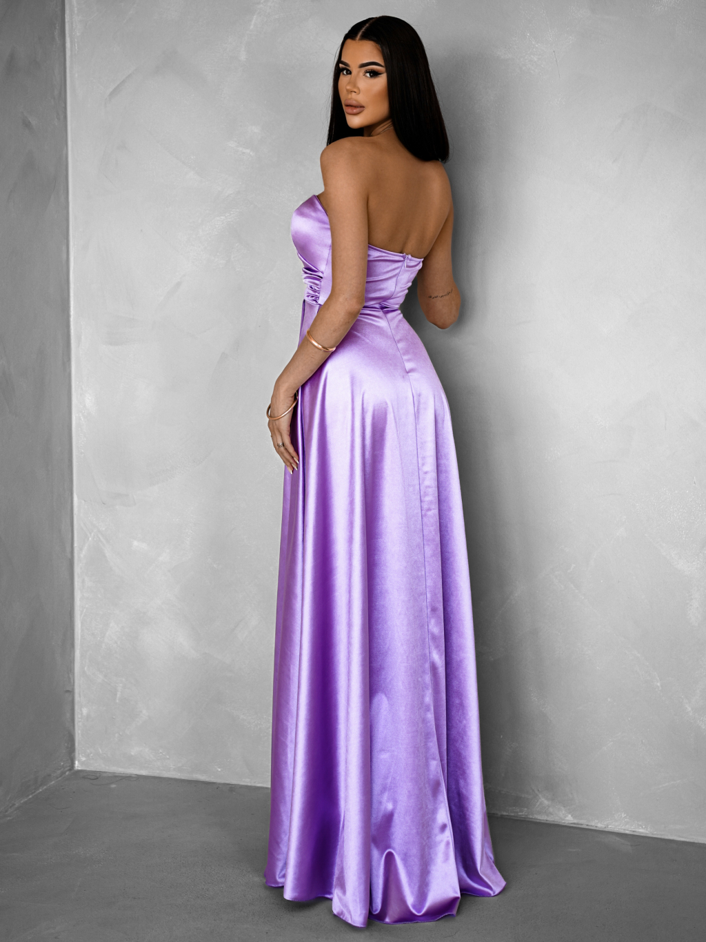 Fialové společenské saténové korzetové šaty SYCHAEUS