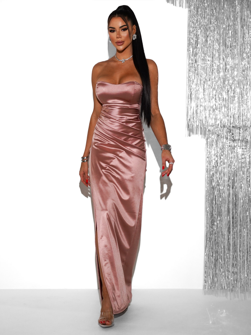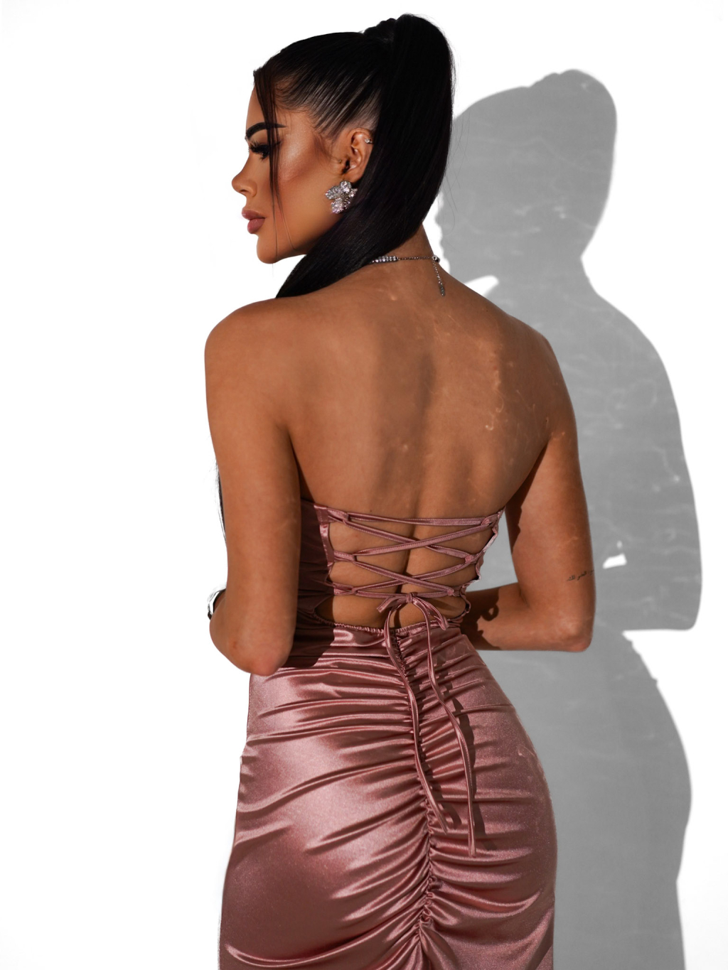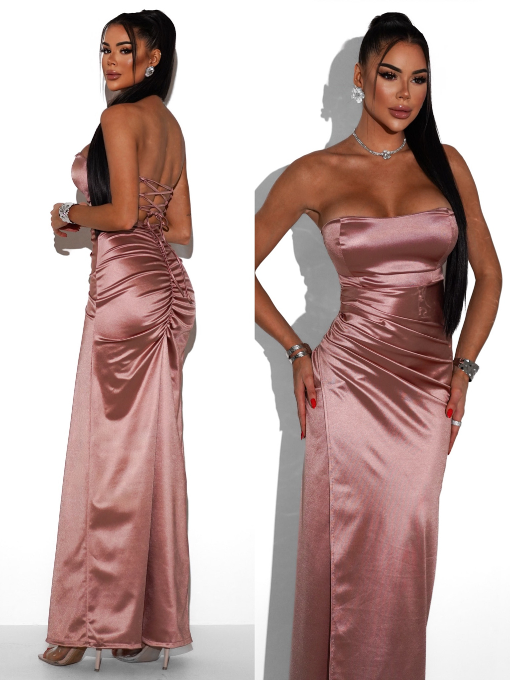 Starorůžové dlouhé společenské korzetové šaty KARLOT
