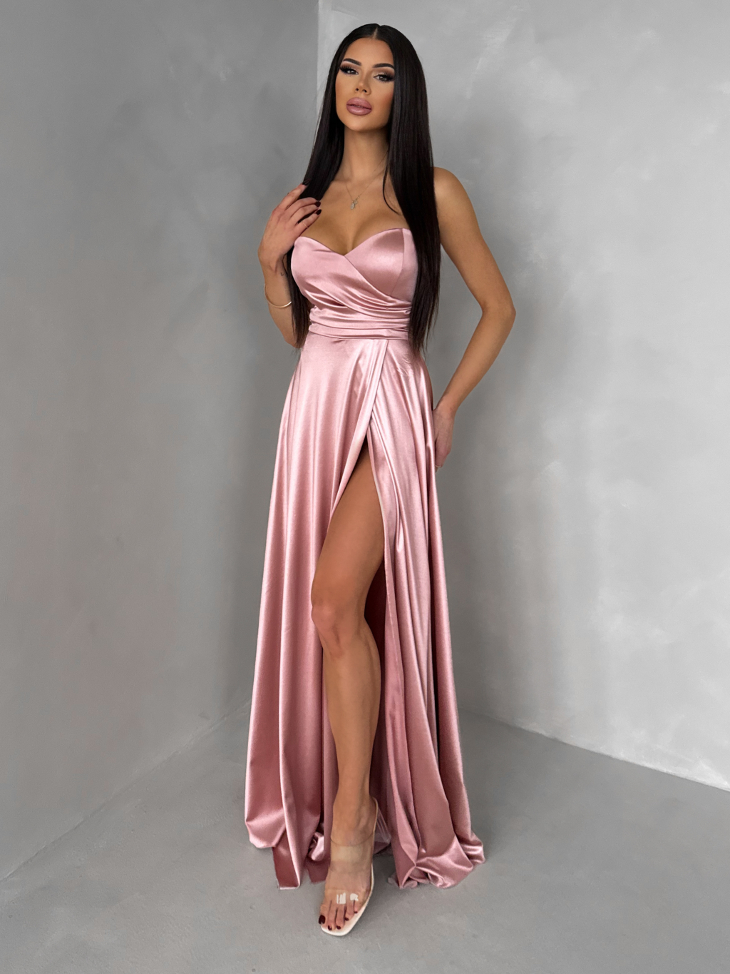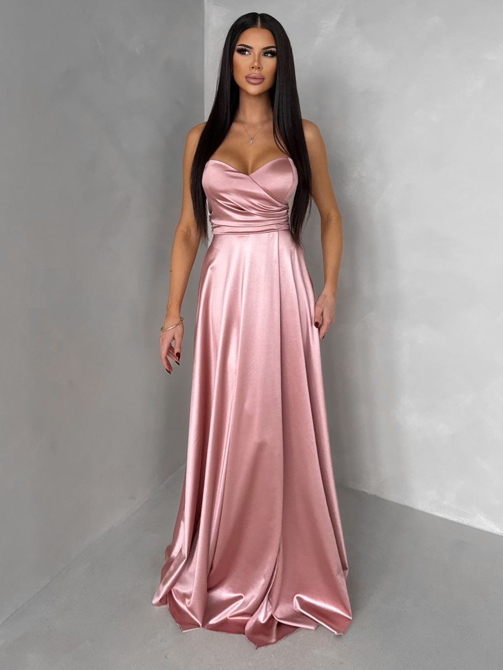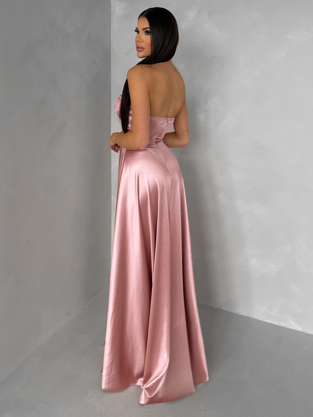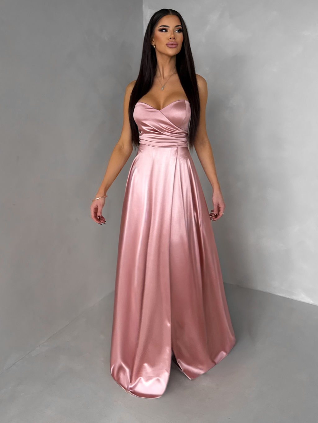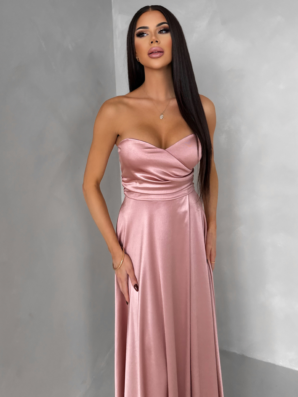 Starorůžové společenské dlouhé šaty SYCHAEUS bez ramínek
