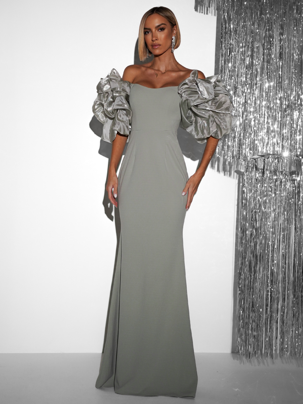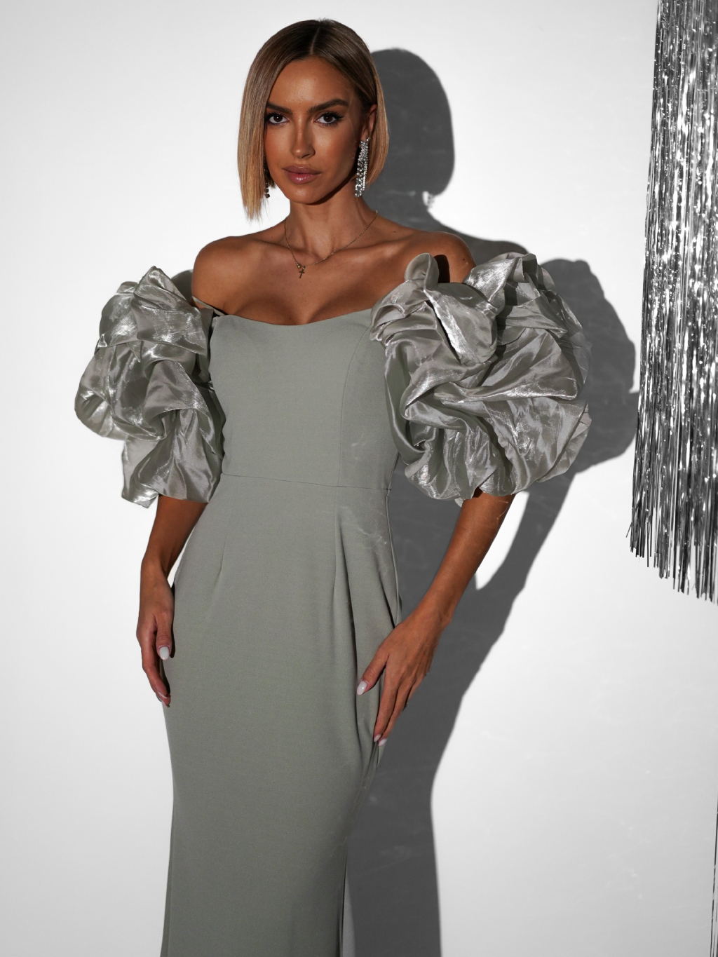 Světle zelenkavé večerní dlouhé šaty KOLIT