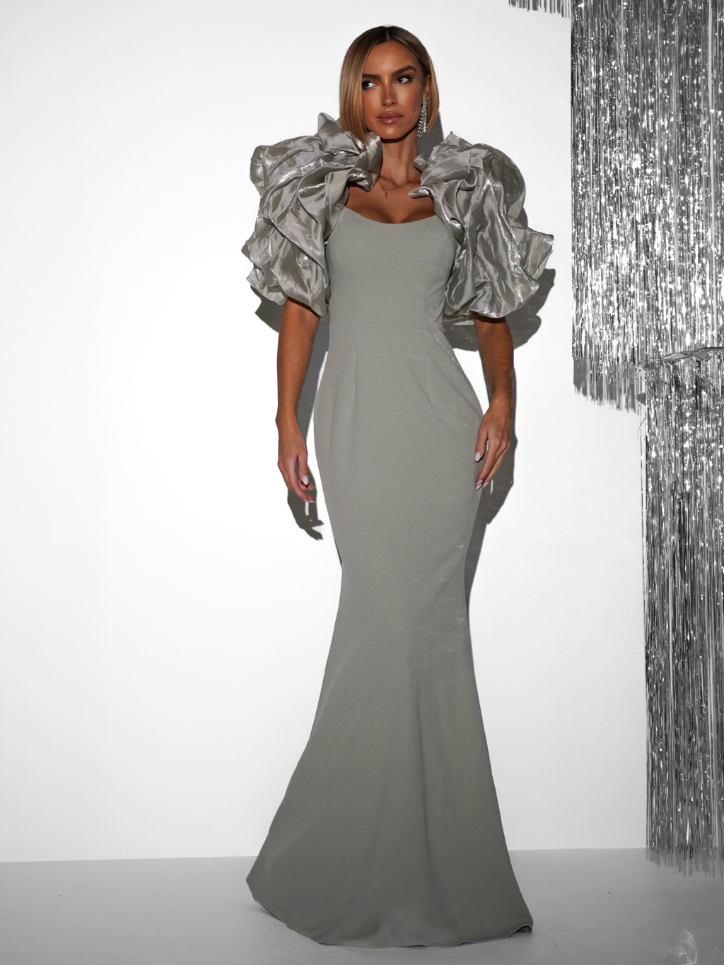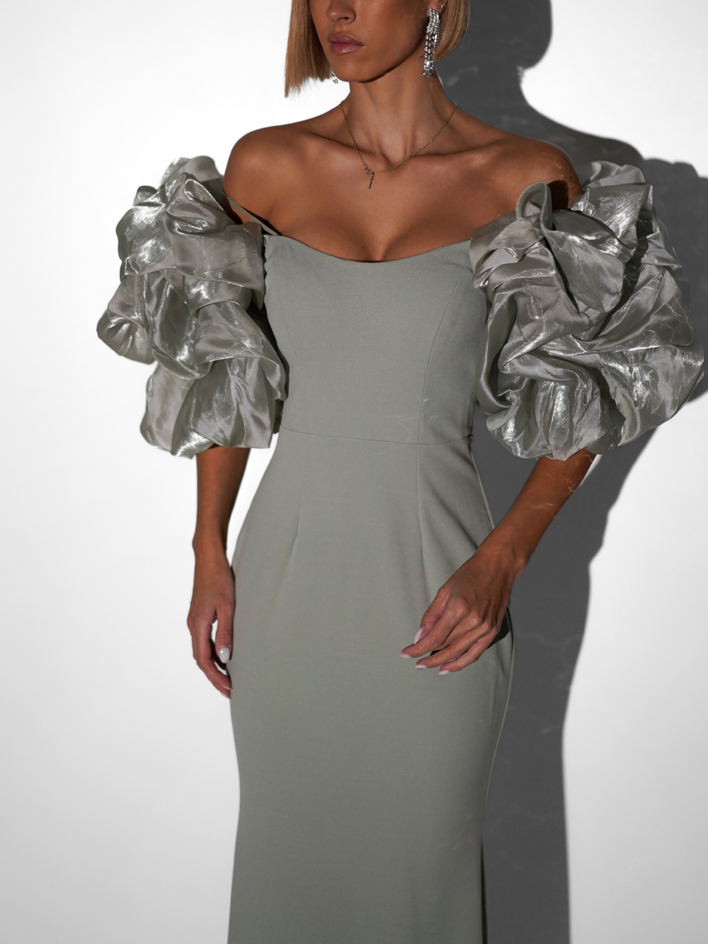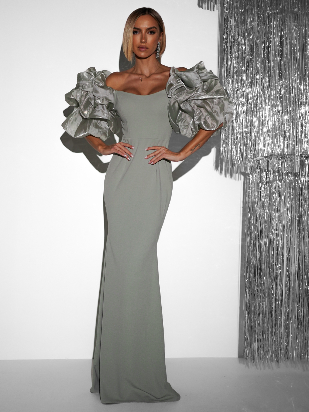 Světle zelenkavé večerní dlouhé šaty KOLIT
