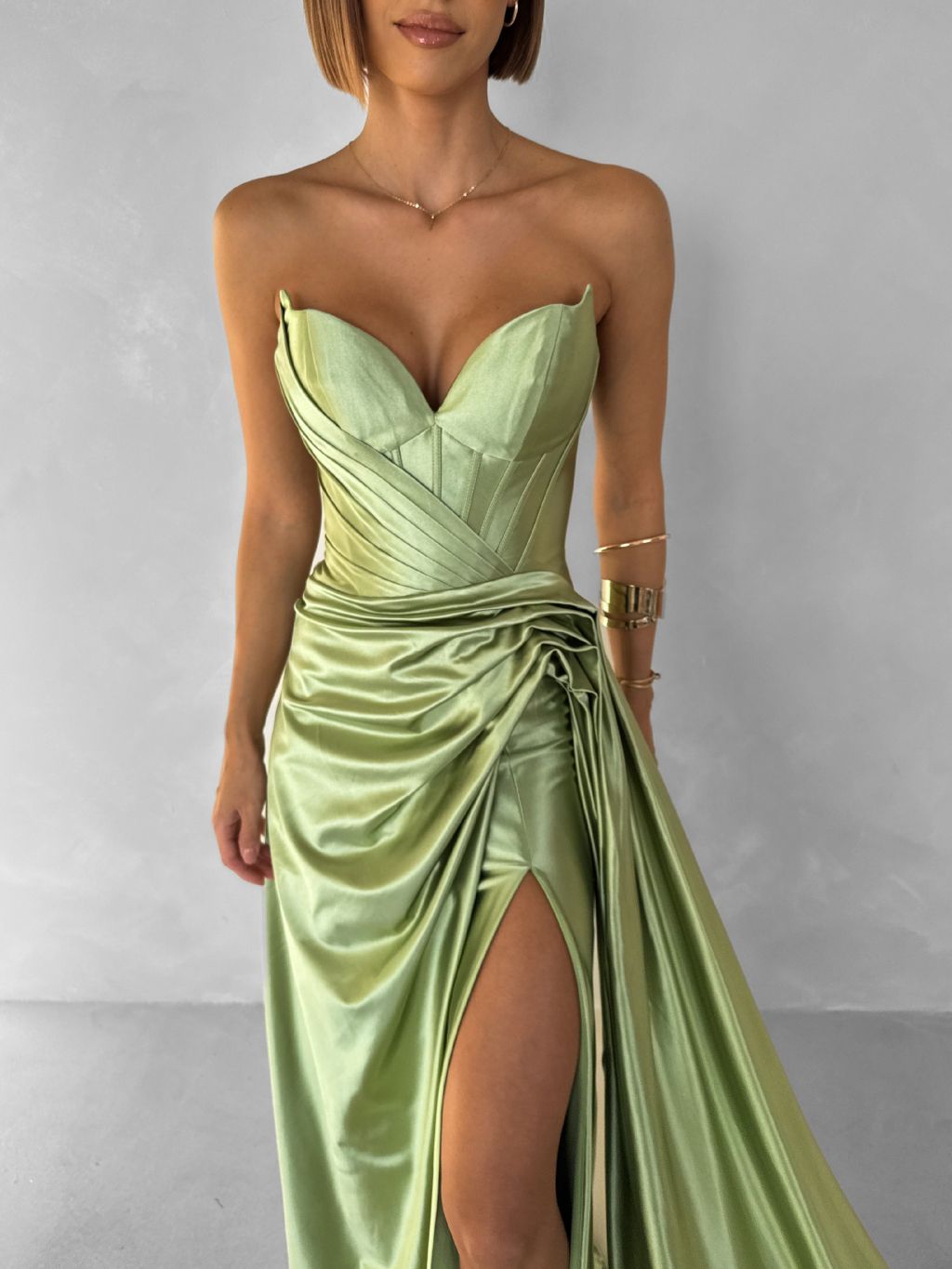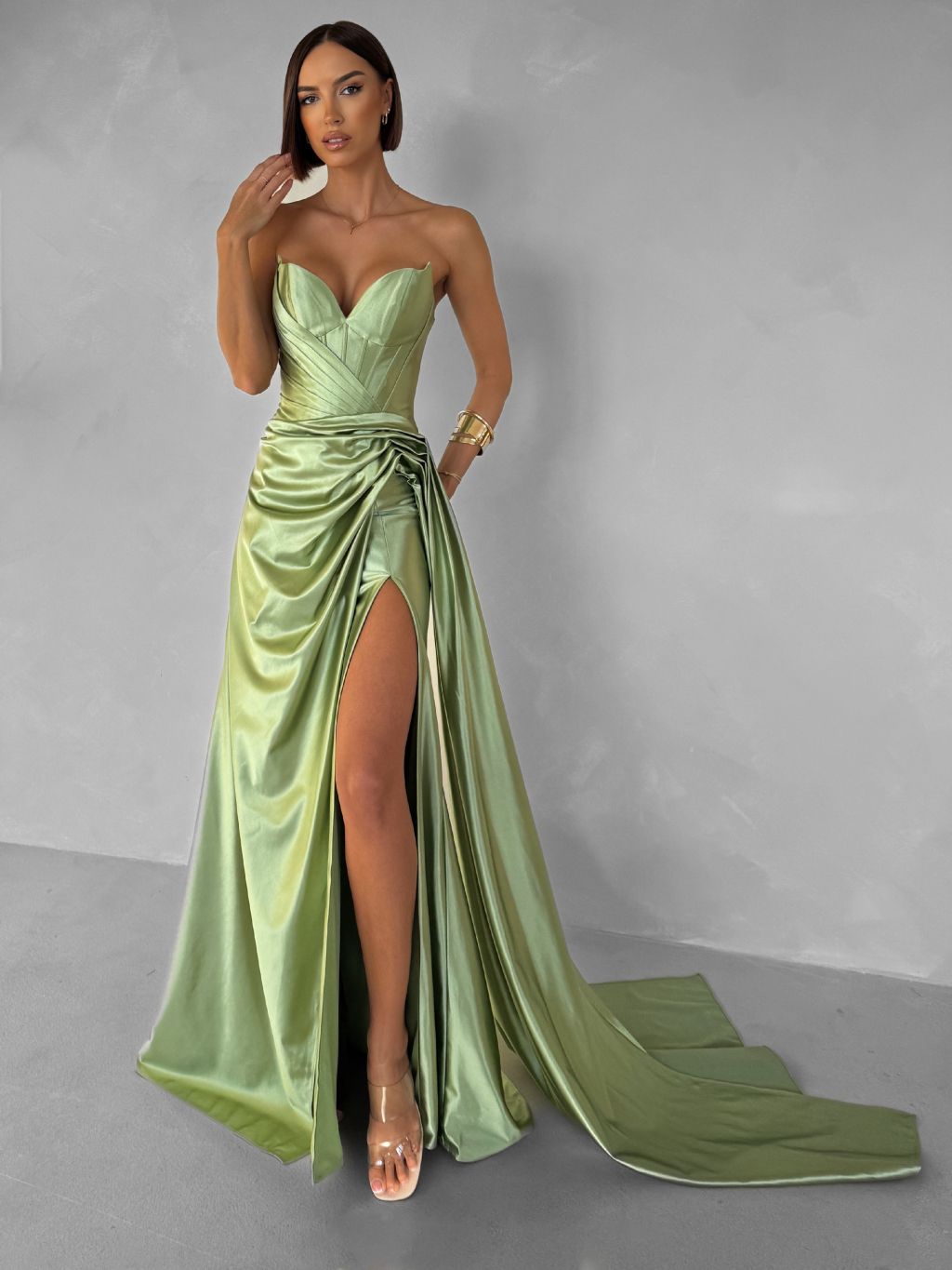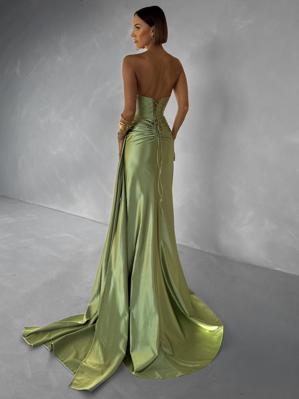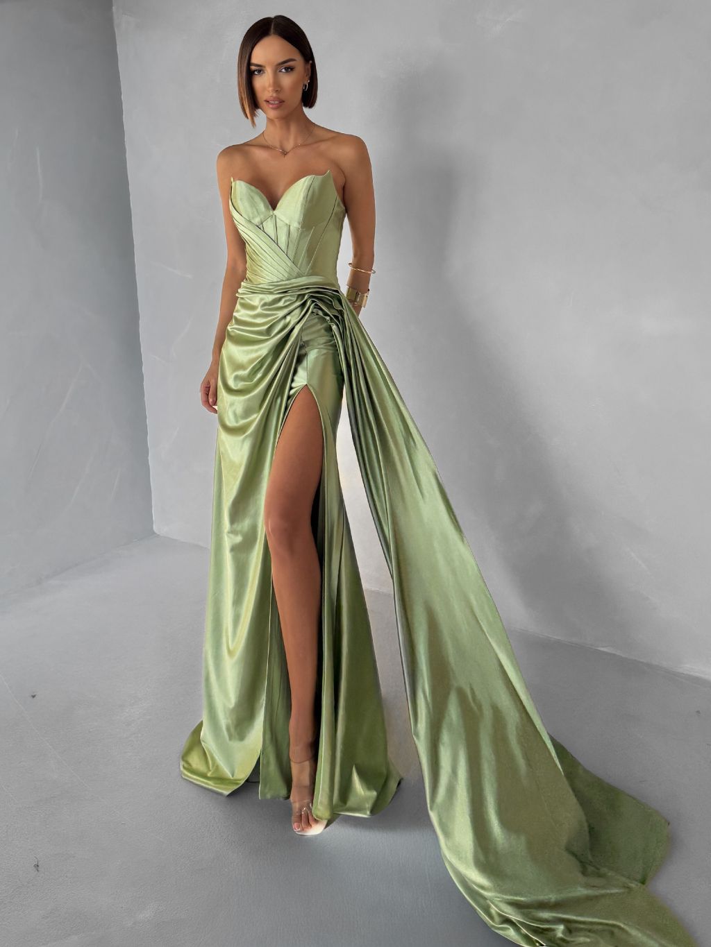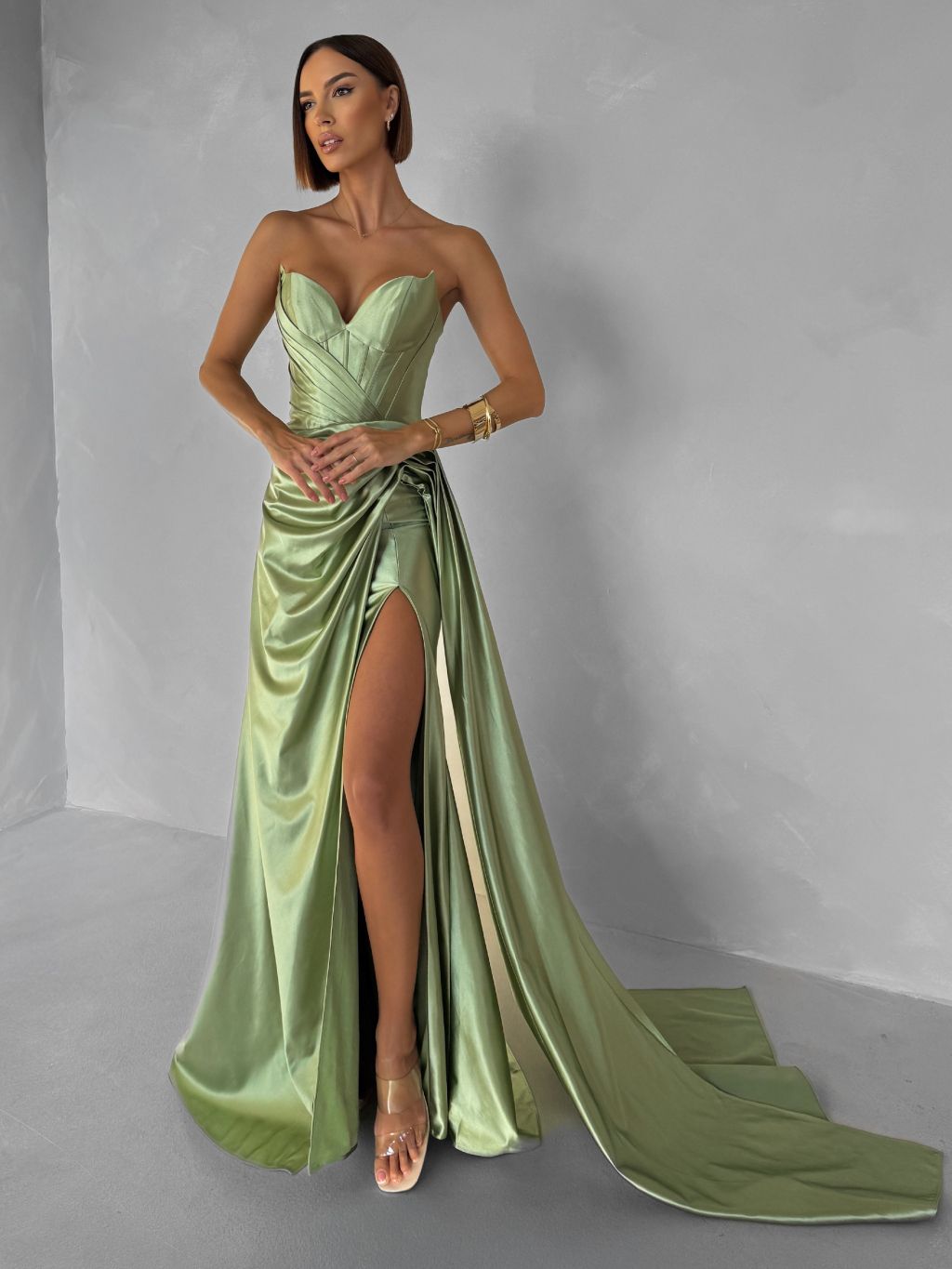 Zelené plesové korzetové dlouhé šaty CELYNDRA s vlečkou