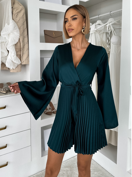 Tmavě petrolejové dlouhé saténové šaty WOMAN s páskem