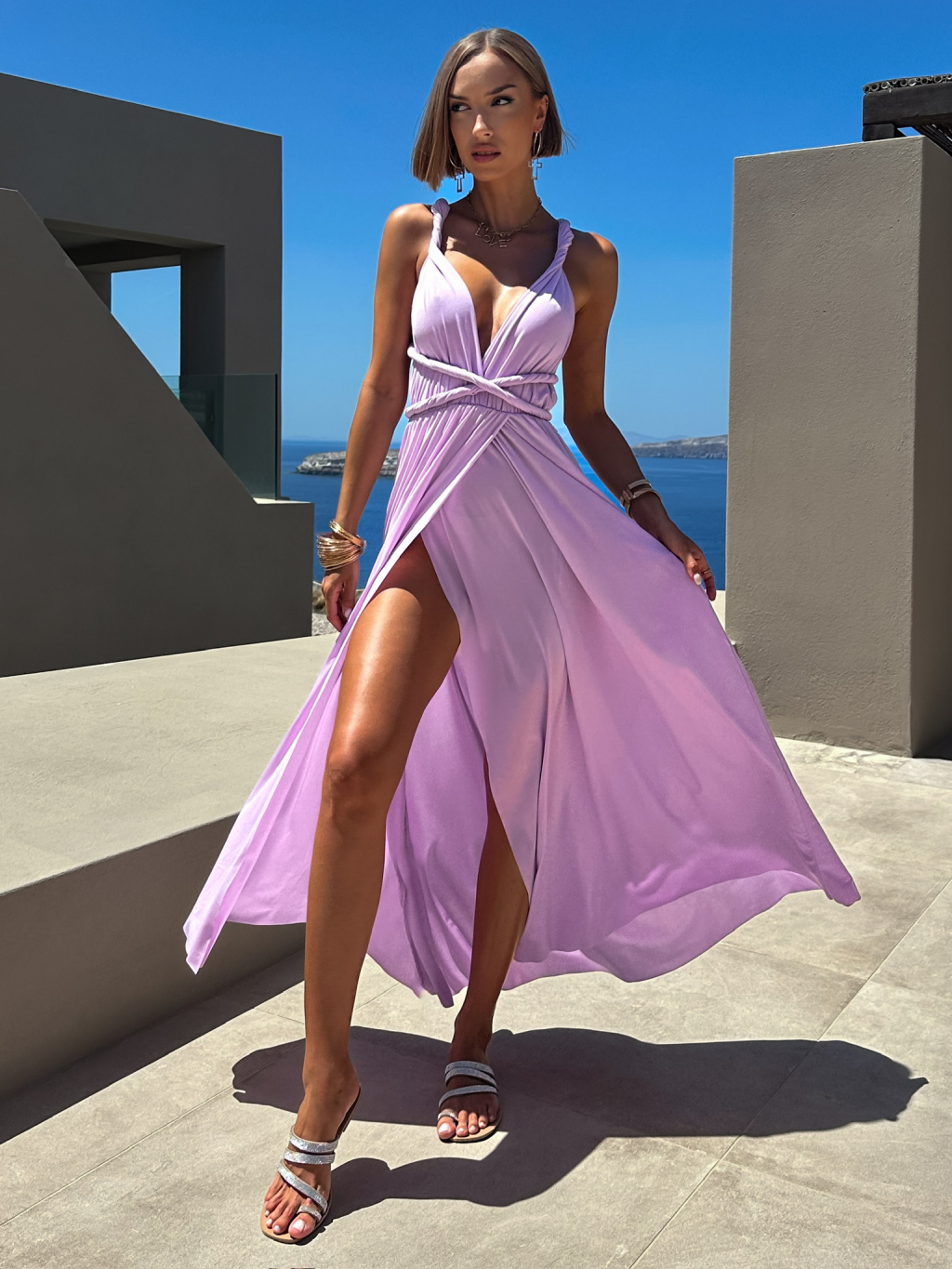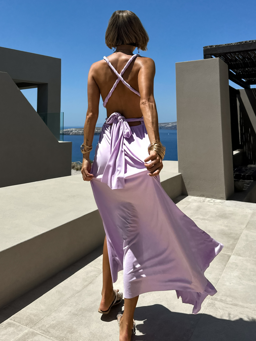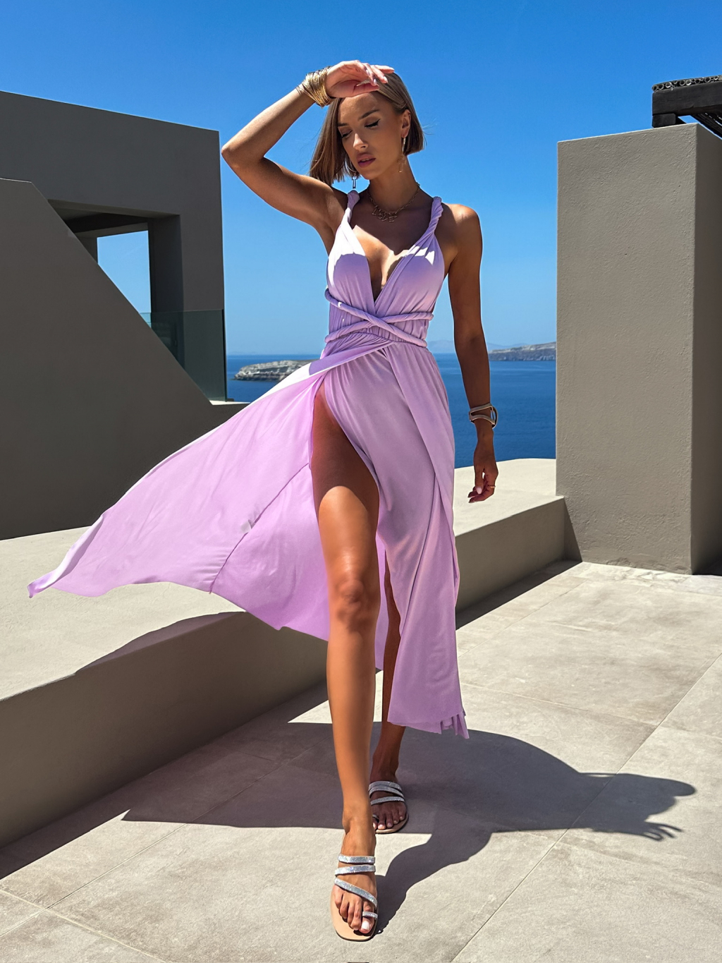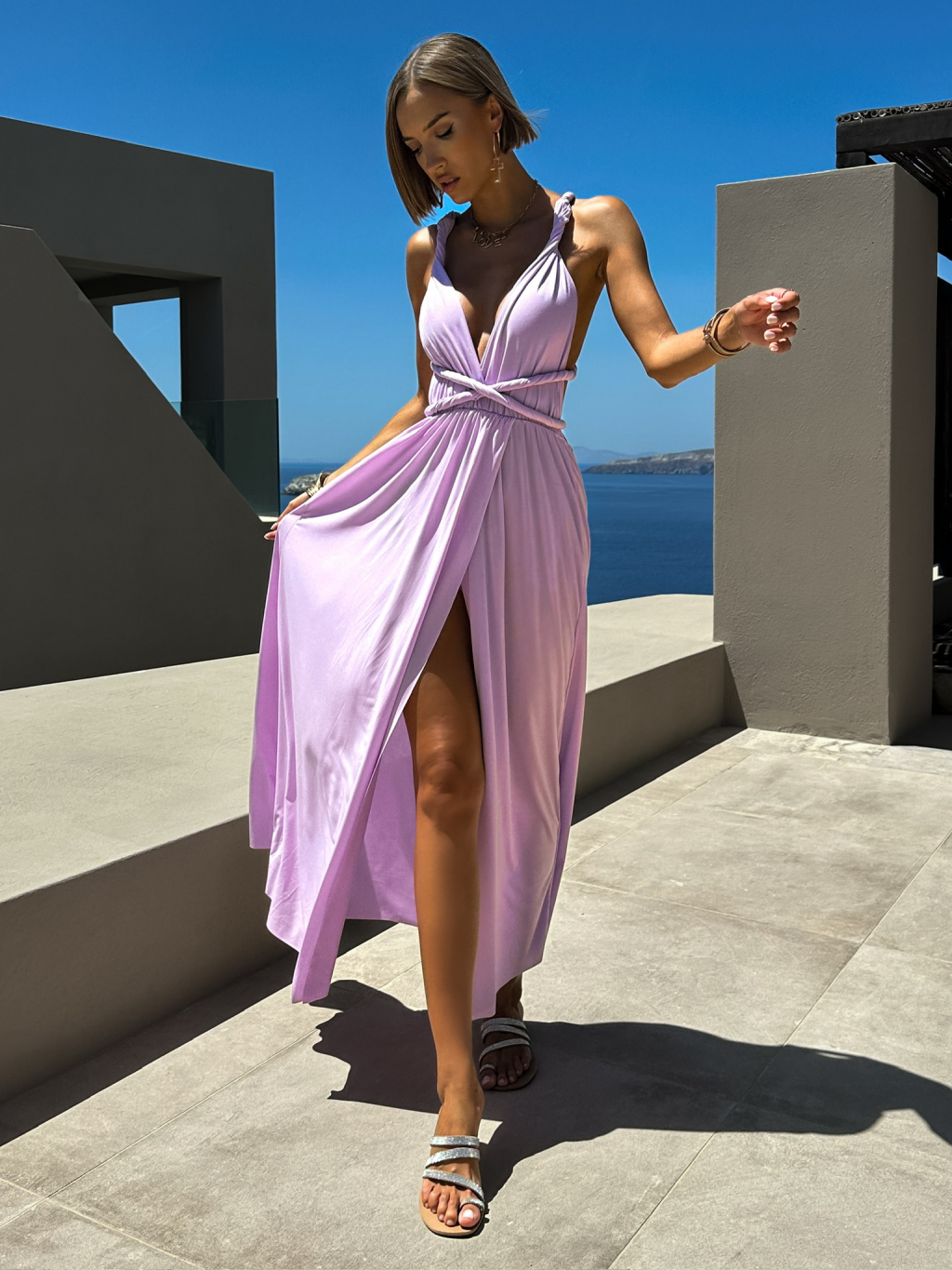 Světle fialové dlouhé variabilní vázací šaty KATIE