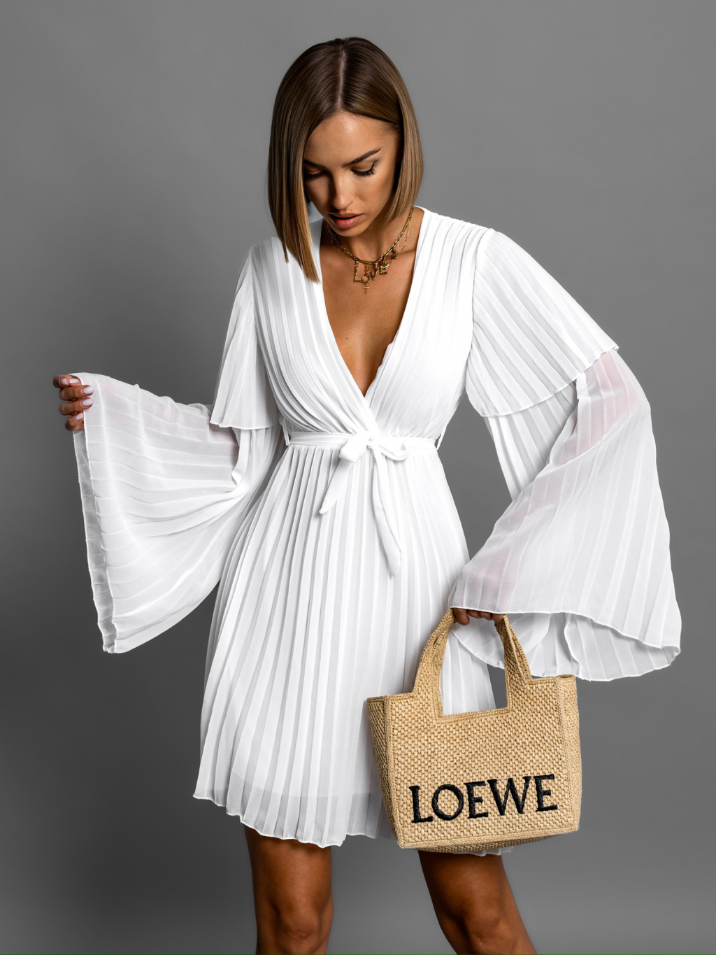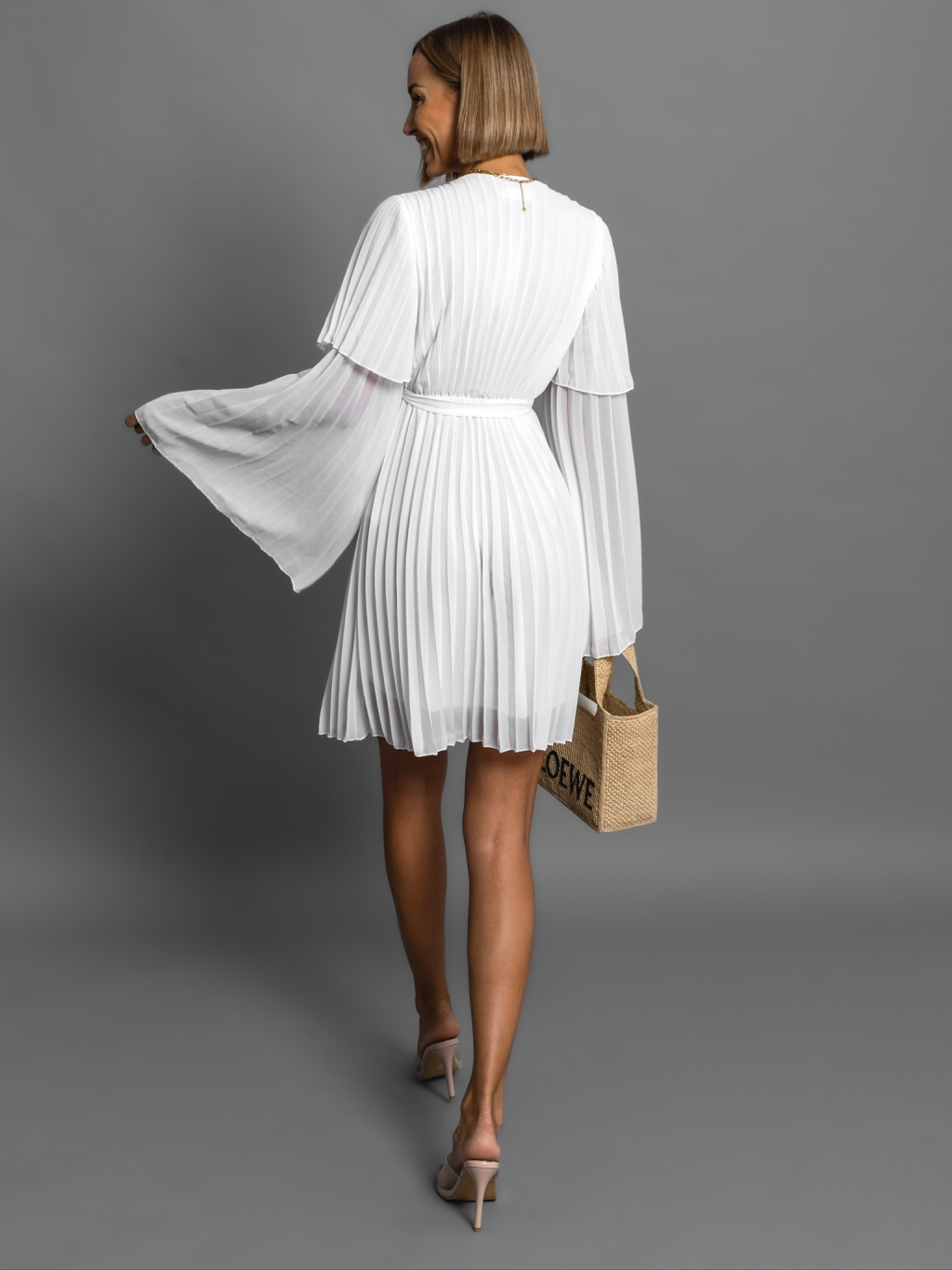 Bílé plisované krátké šaty KAROLIN na zavazování