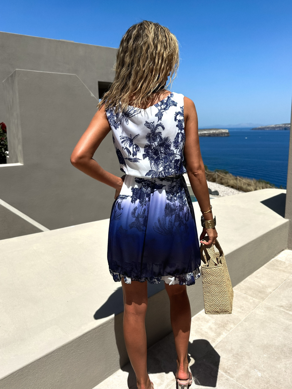 Bílomodré letní krátké šaty KORLAN