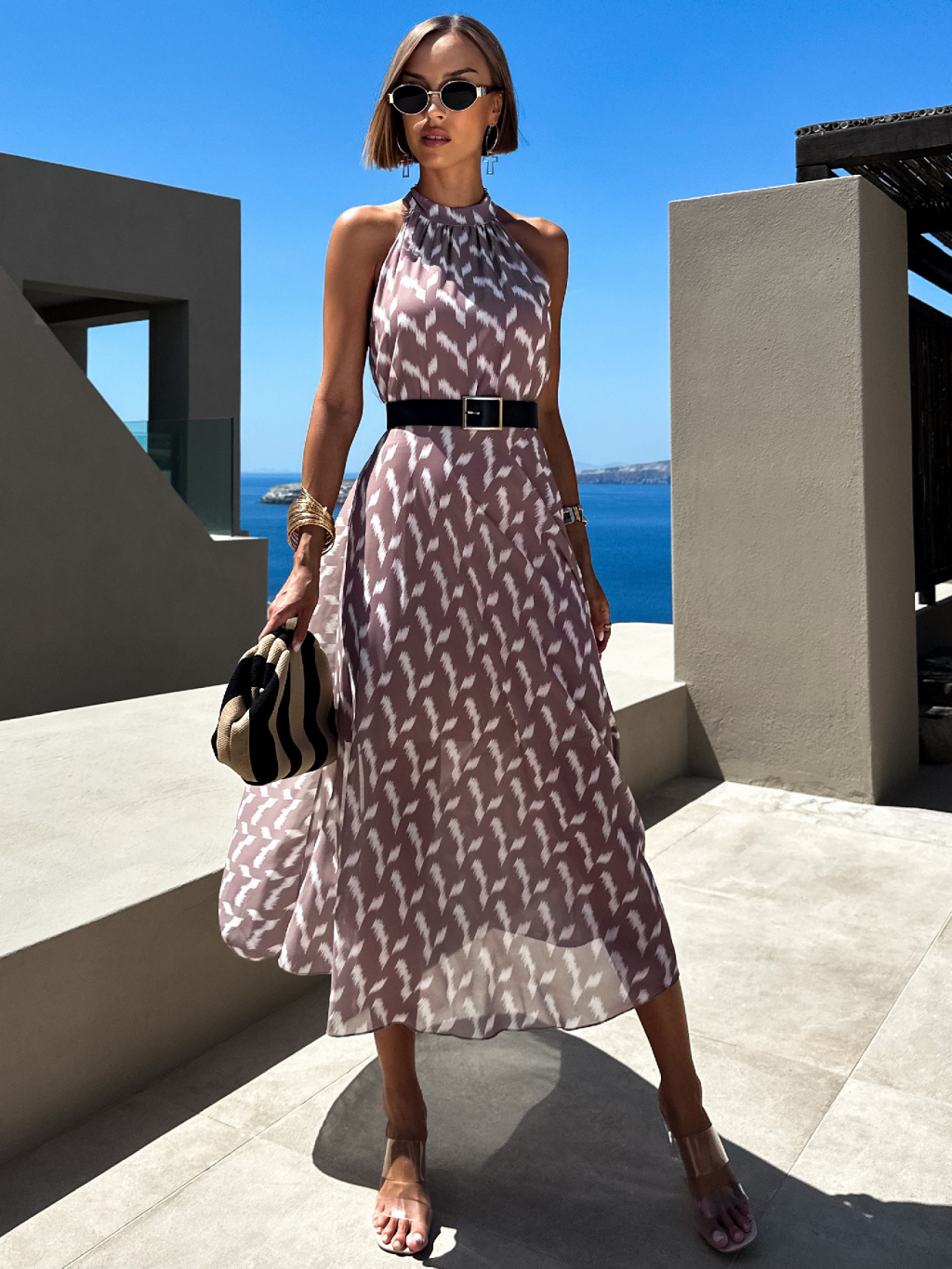 Hnědé dlouhé vzdušné šaty DLEGO s páskem