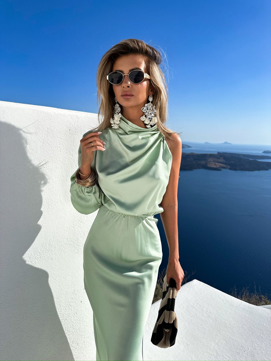 Světle zelené saténové šaty NEVER s průstřihem